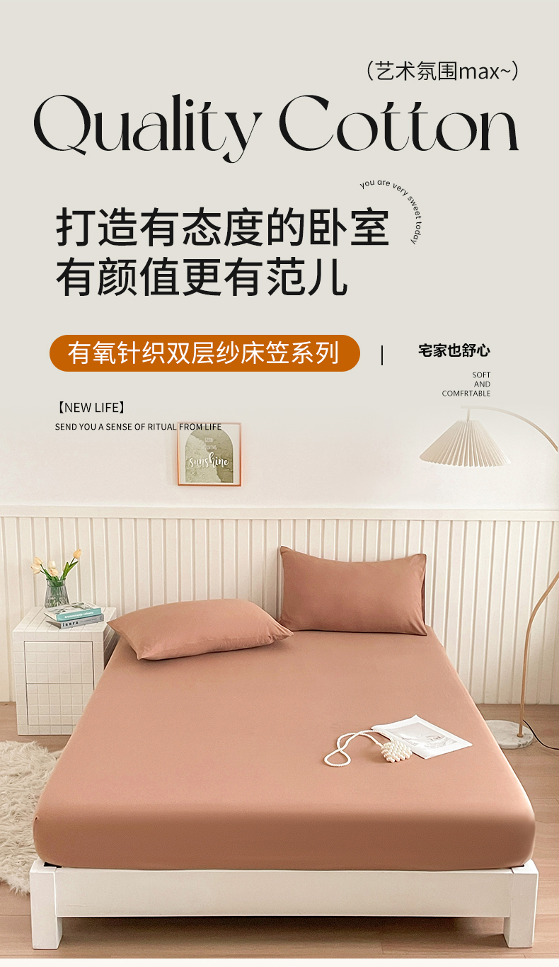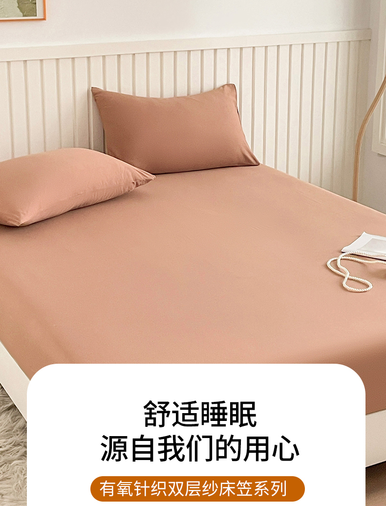 芯元素 2025新款针织双层纱印花床笠 丝雾棕