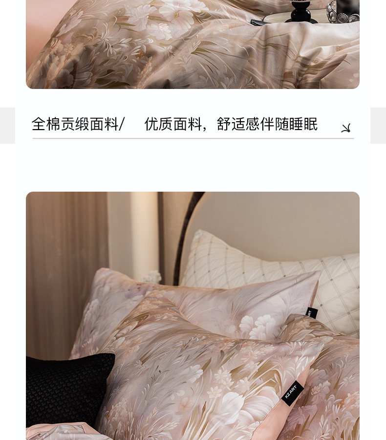 商品名称:佳汐蓝家纺 2025新款春夏100贡缎长绒棉数码印花四件套 花雾
