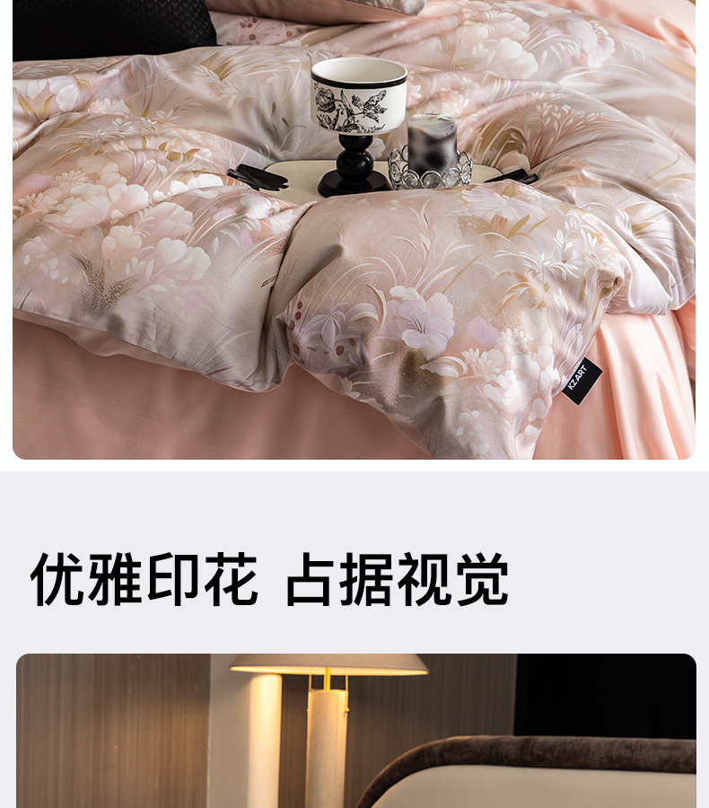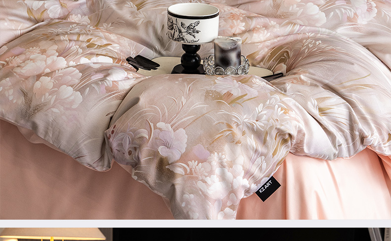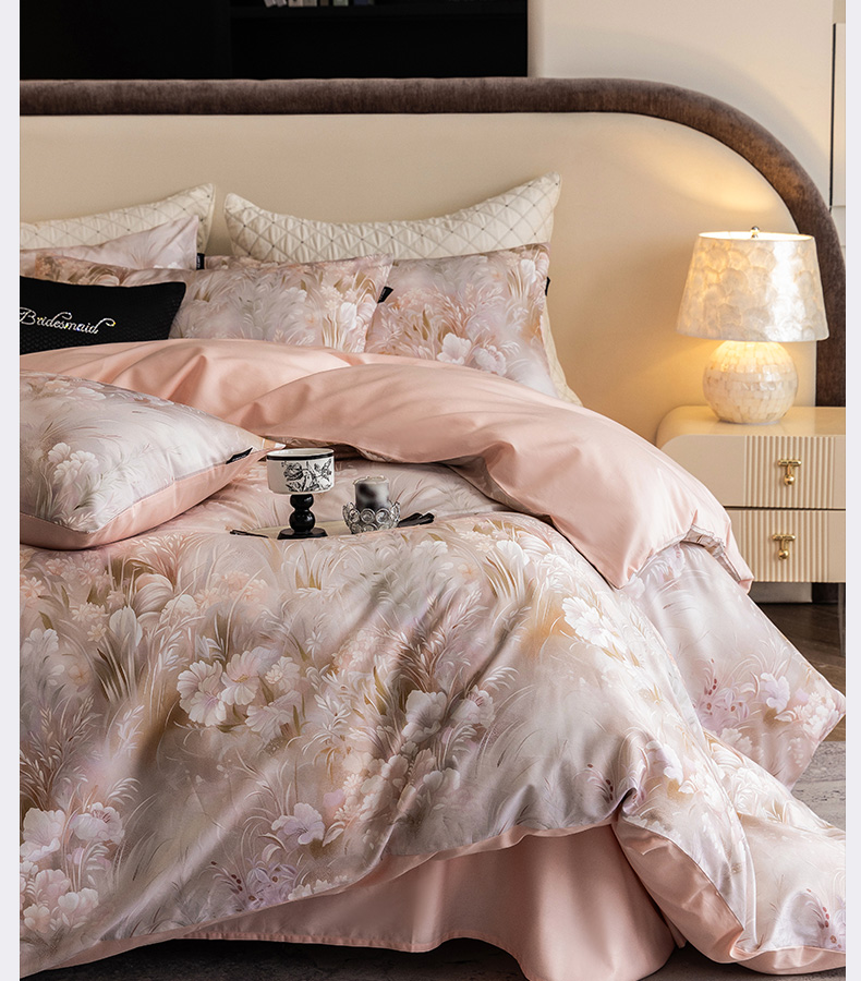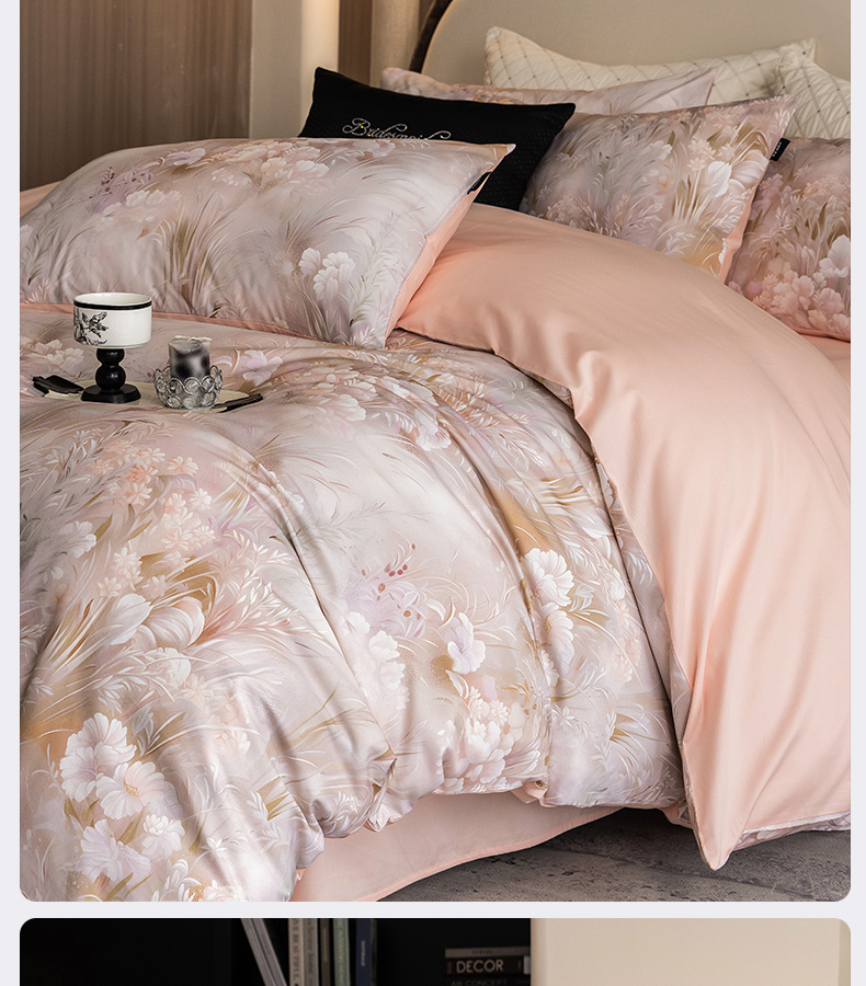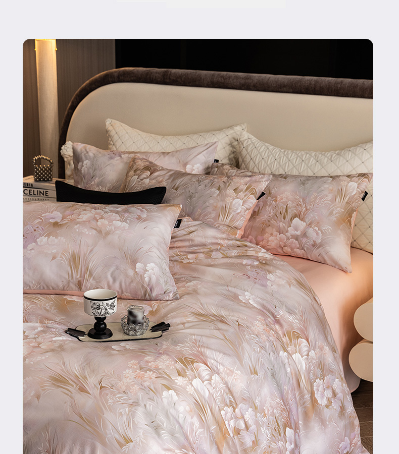 佳汐蓝家纺 2025新款春夏100贡缎长绒棉数码印花四件套 花雾