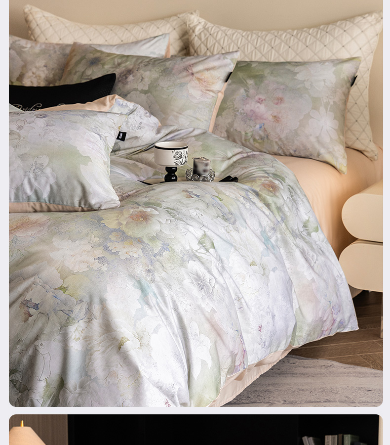 (总)佳汐蓝家纺 2025新款60S奥地利LF兰精天丝温馨花缘系列四件套,(天丝)温馨花缘-叶绿,(天丝)温馨花缘-珍珠粉,(天丝)温馨花缘-珍珠绿