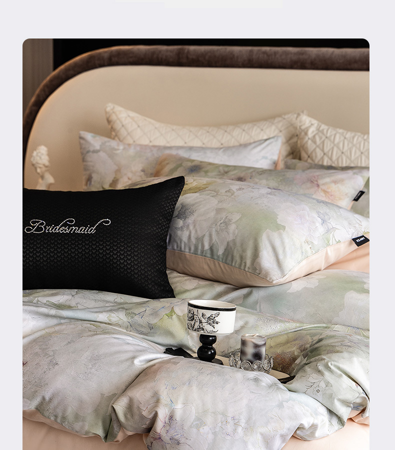 (总)佳汐蓝家纺 2025新款春夏新品TENCEL兰精天丝四件套绣花系列,墨菲花园·珍珠绿