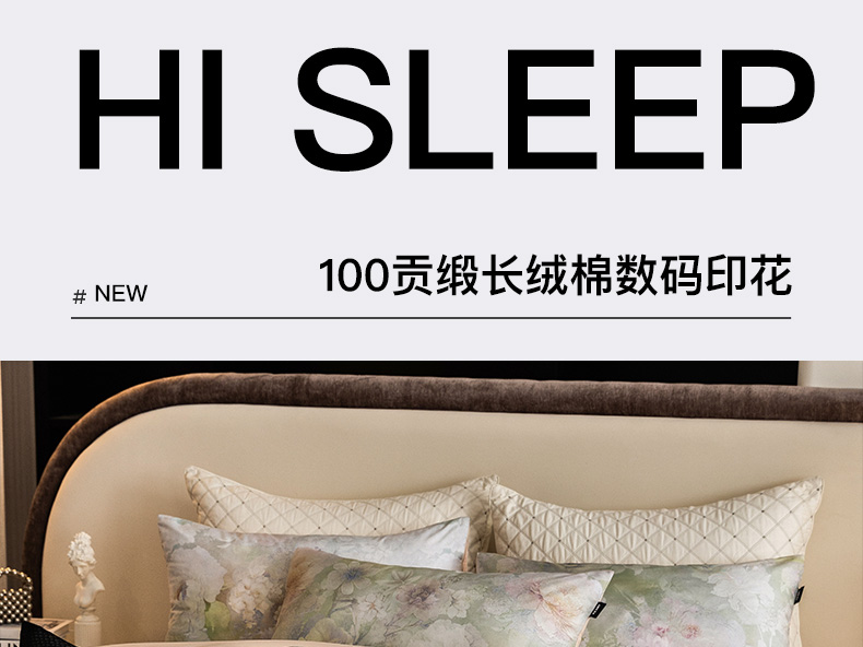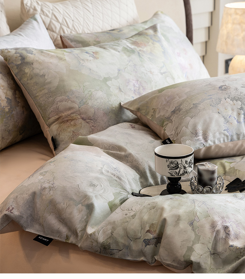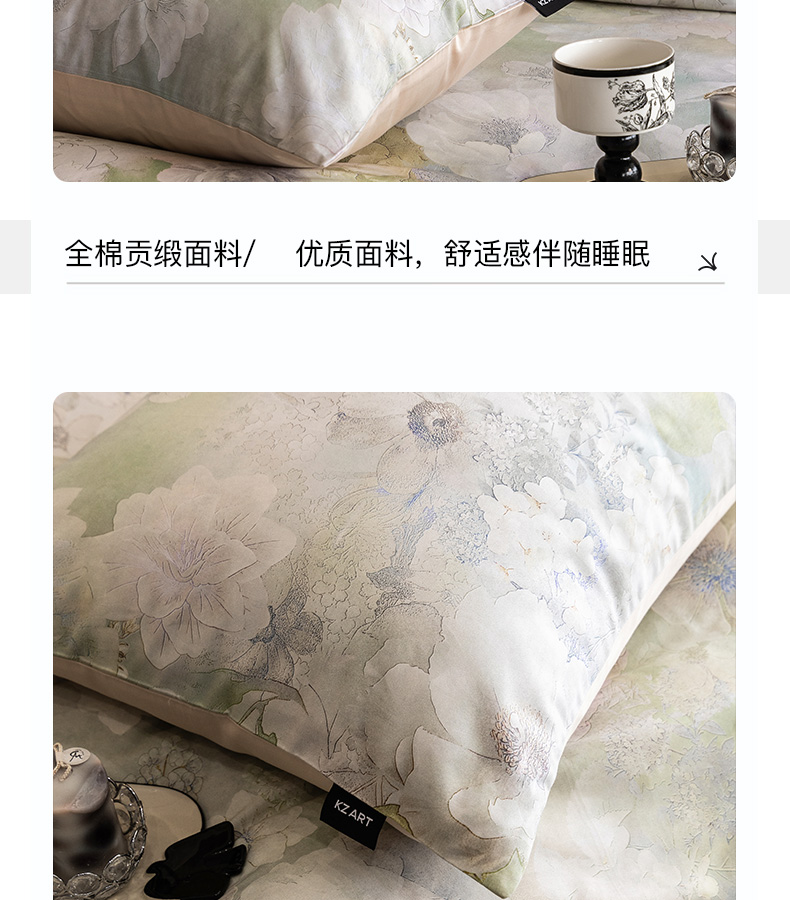 佳汐蓝家纺 2025新款春夏100贡缎长绒棉数码印花四件套 闲云归处-绿
