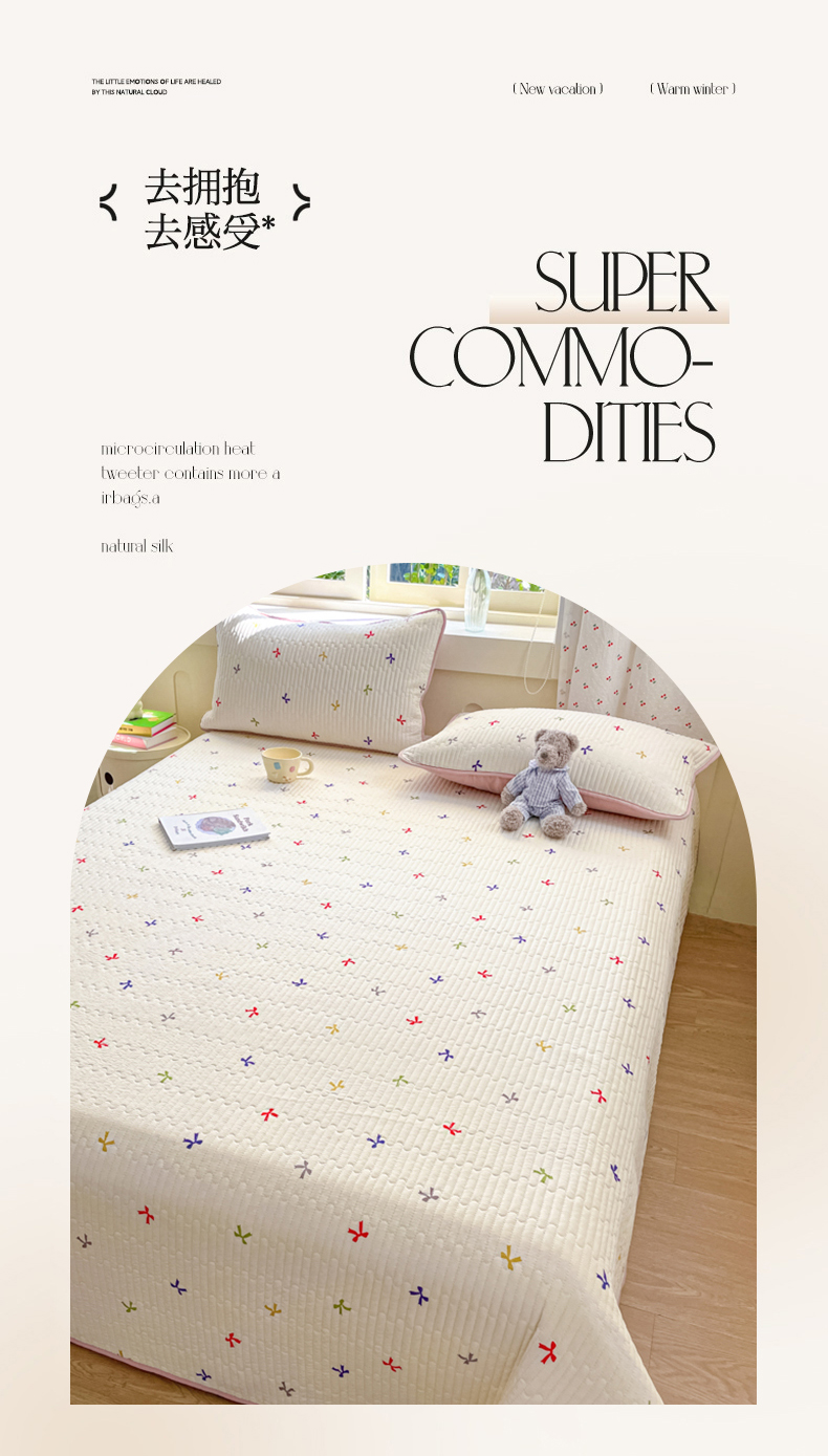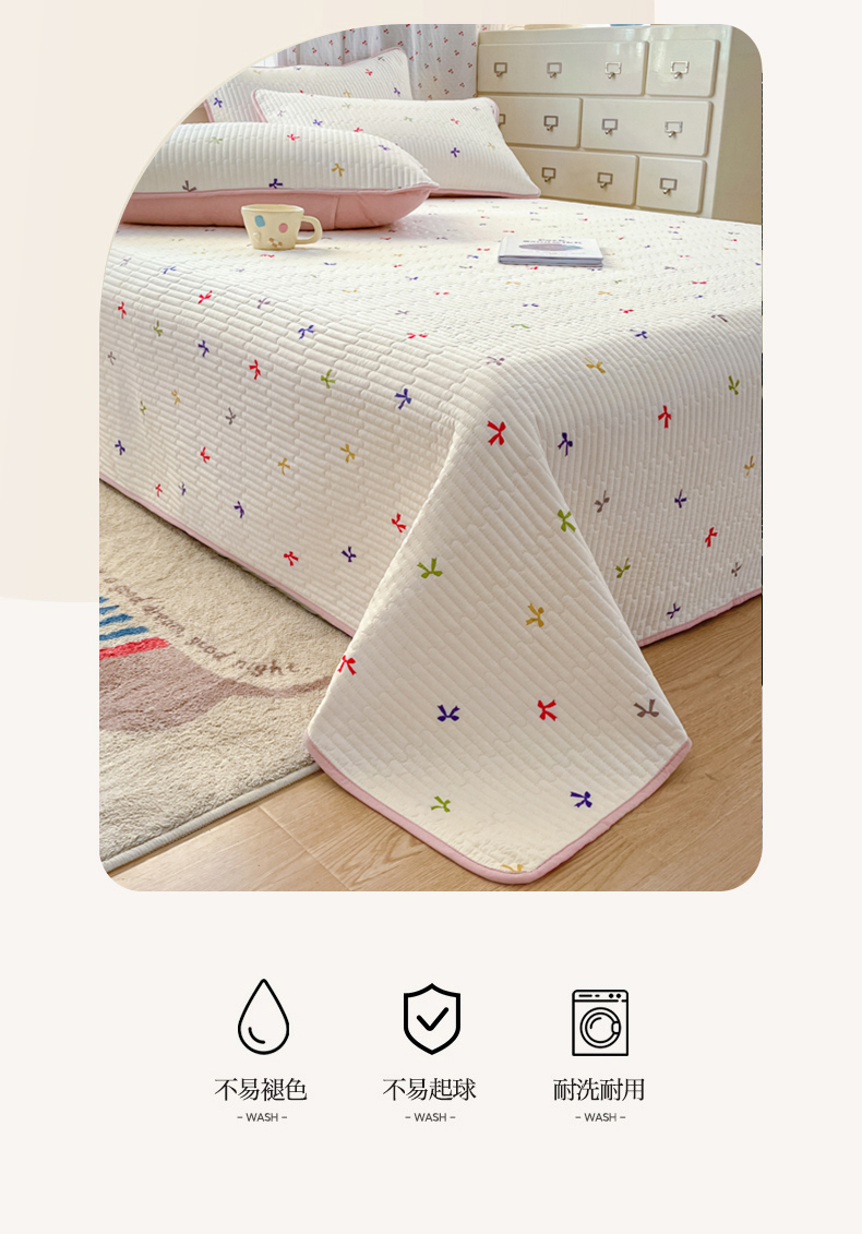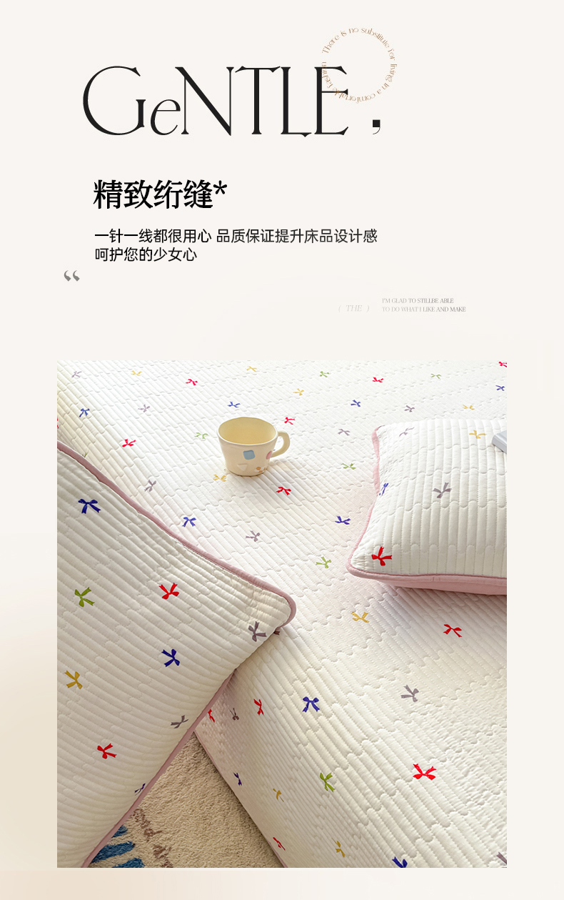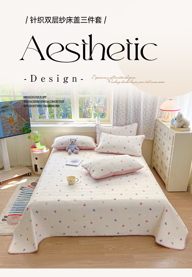 商品名称:857家居 2025新款针织双层纱床盖三件套 蝴蝶奶糖