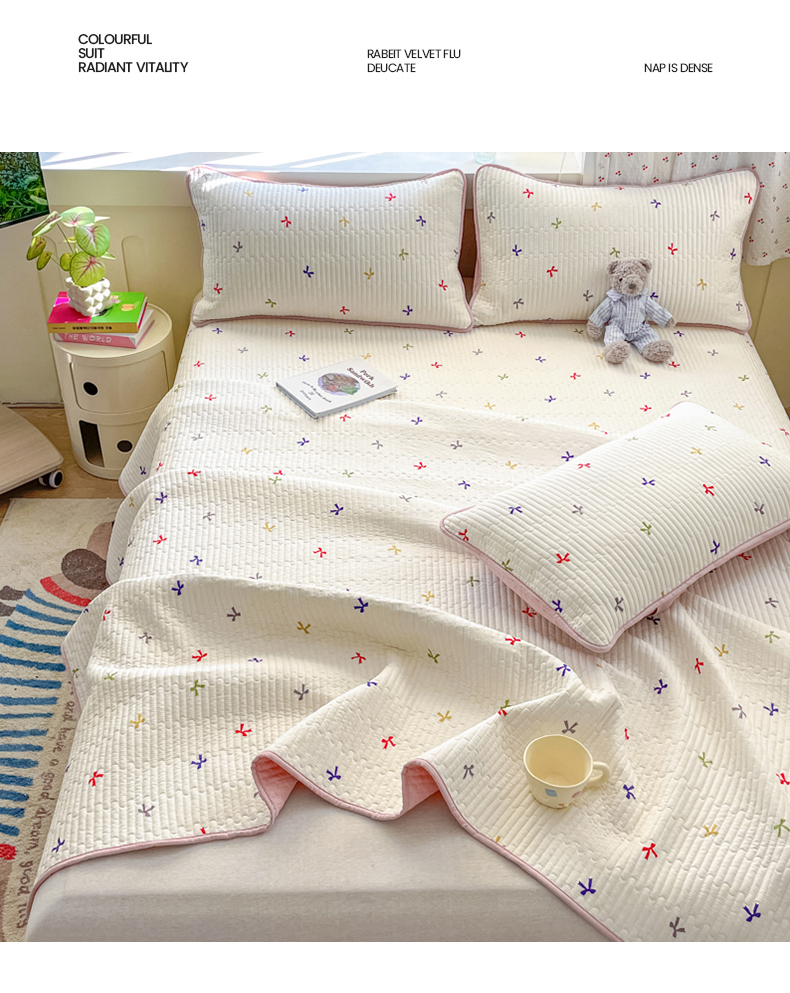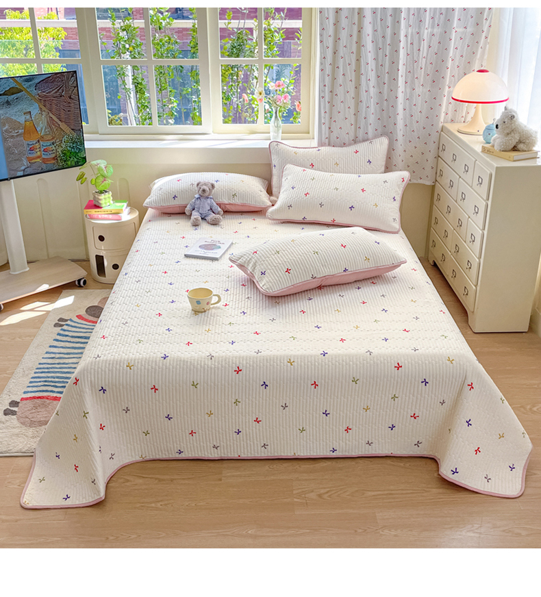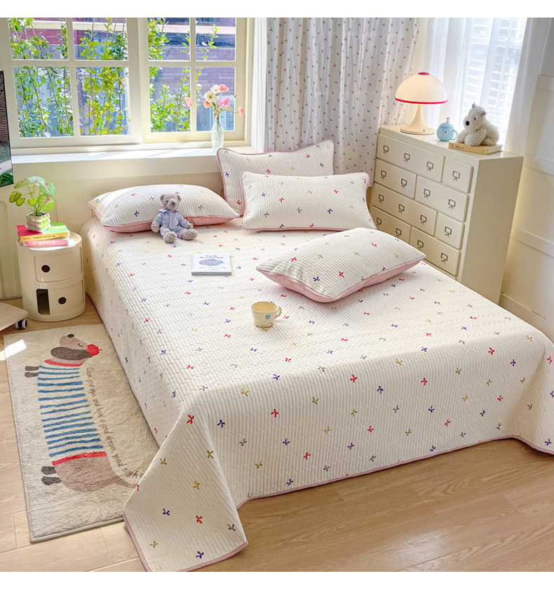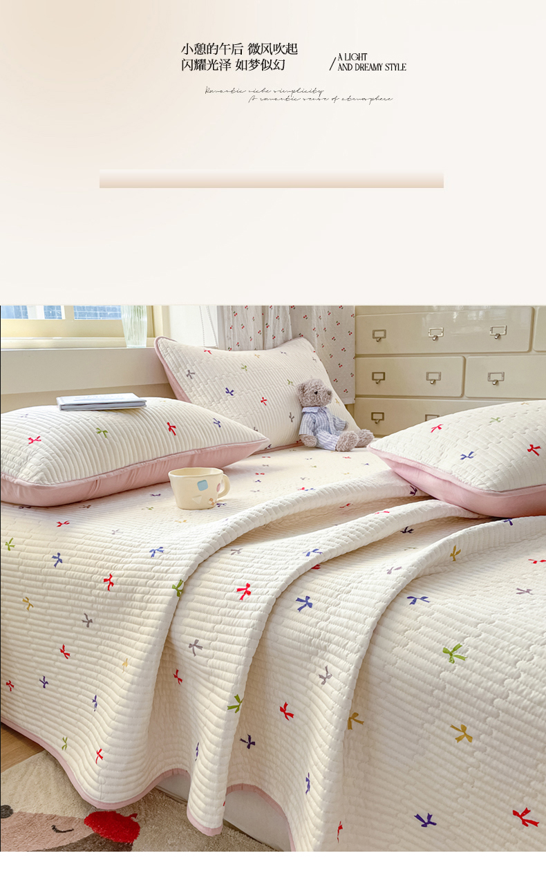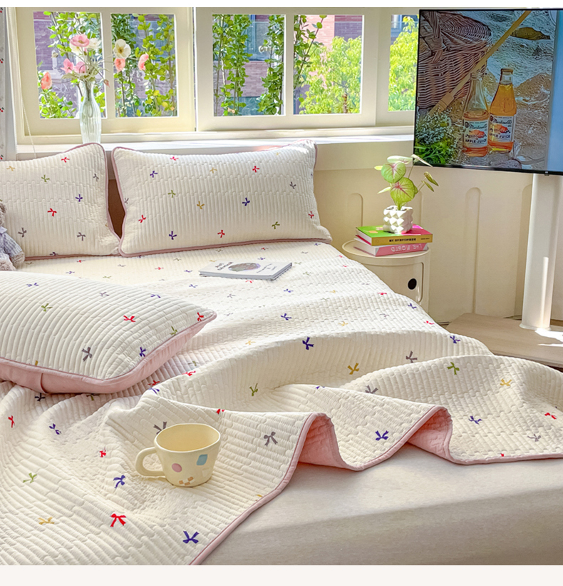 商品名称:857家居 2025新款针织双层纱床盖三件套 蝴蝶奶糖