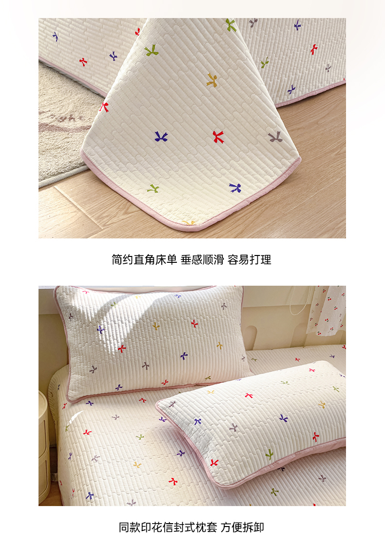 857家居 2025新款针织双层纱床盖三件套 蝴蝶奶糖