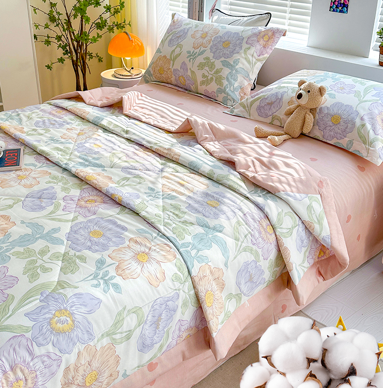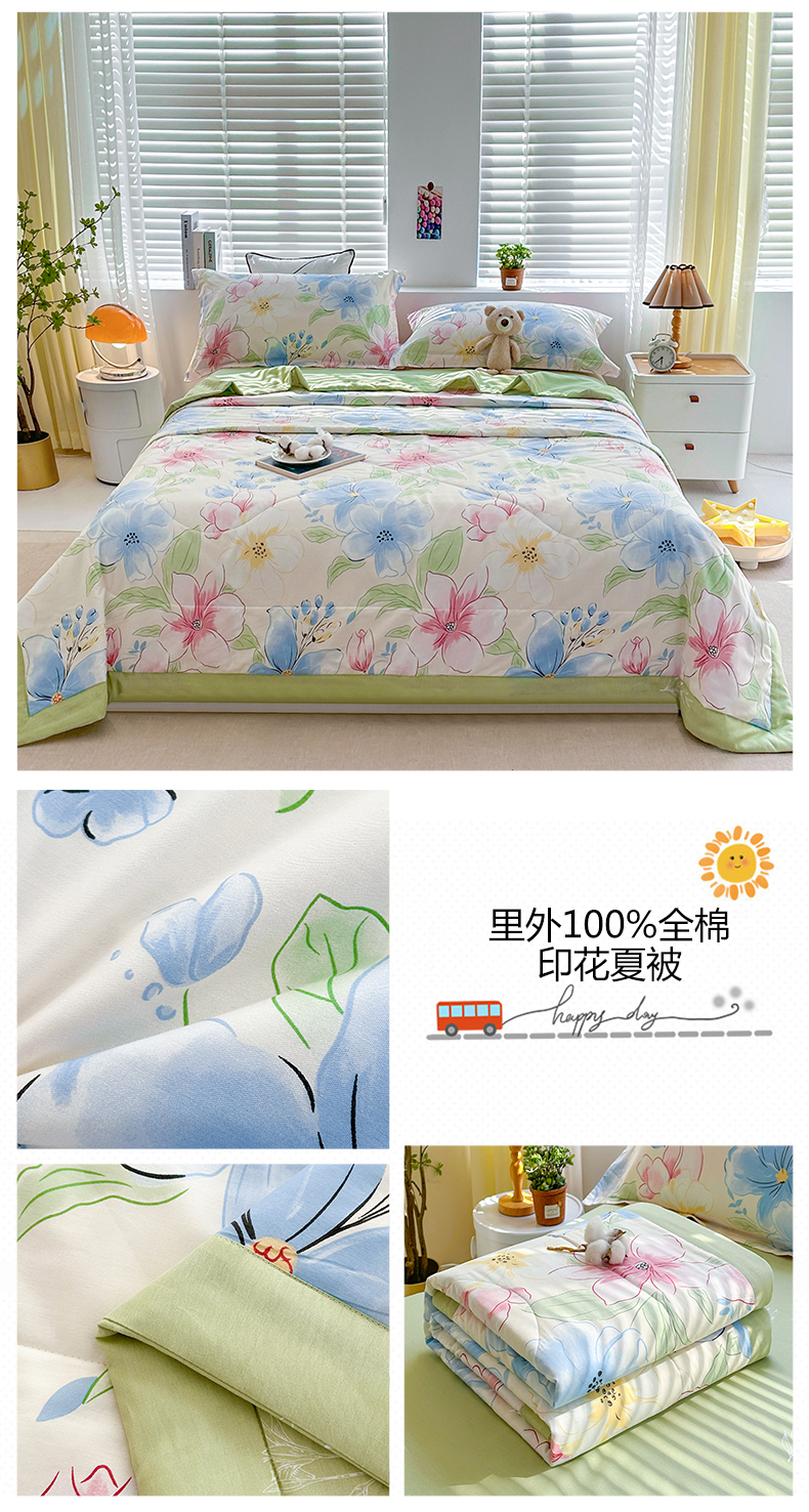 商品名称:欧夏家纺 2025新款里外全棉印花夏被100%新疆棉花 蘑菇兔
