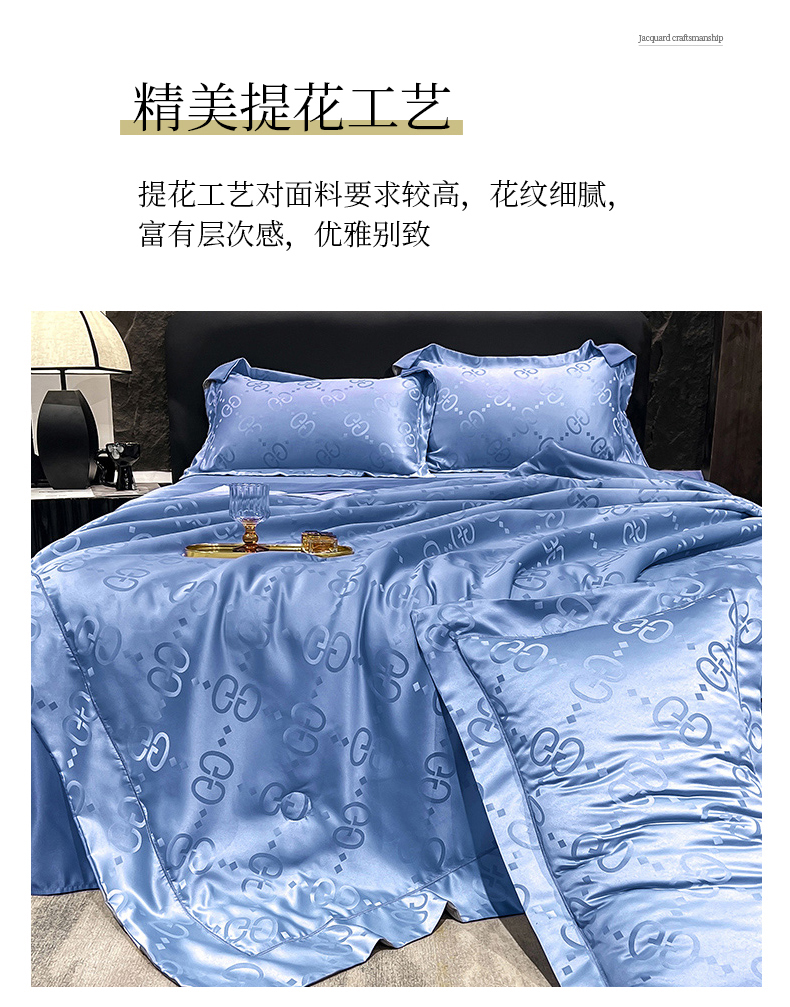 (总) 新25 经年2025年 水洗真丝冰丝天丝提花四件套直播爆款 格林系列 ,格林-宝蓝,格林-粉玉,格林-浅灰,格林-天蓝,格林-香槟