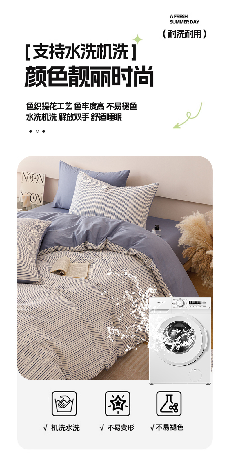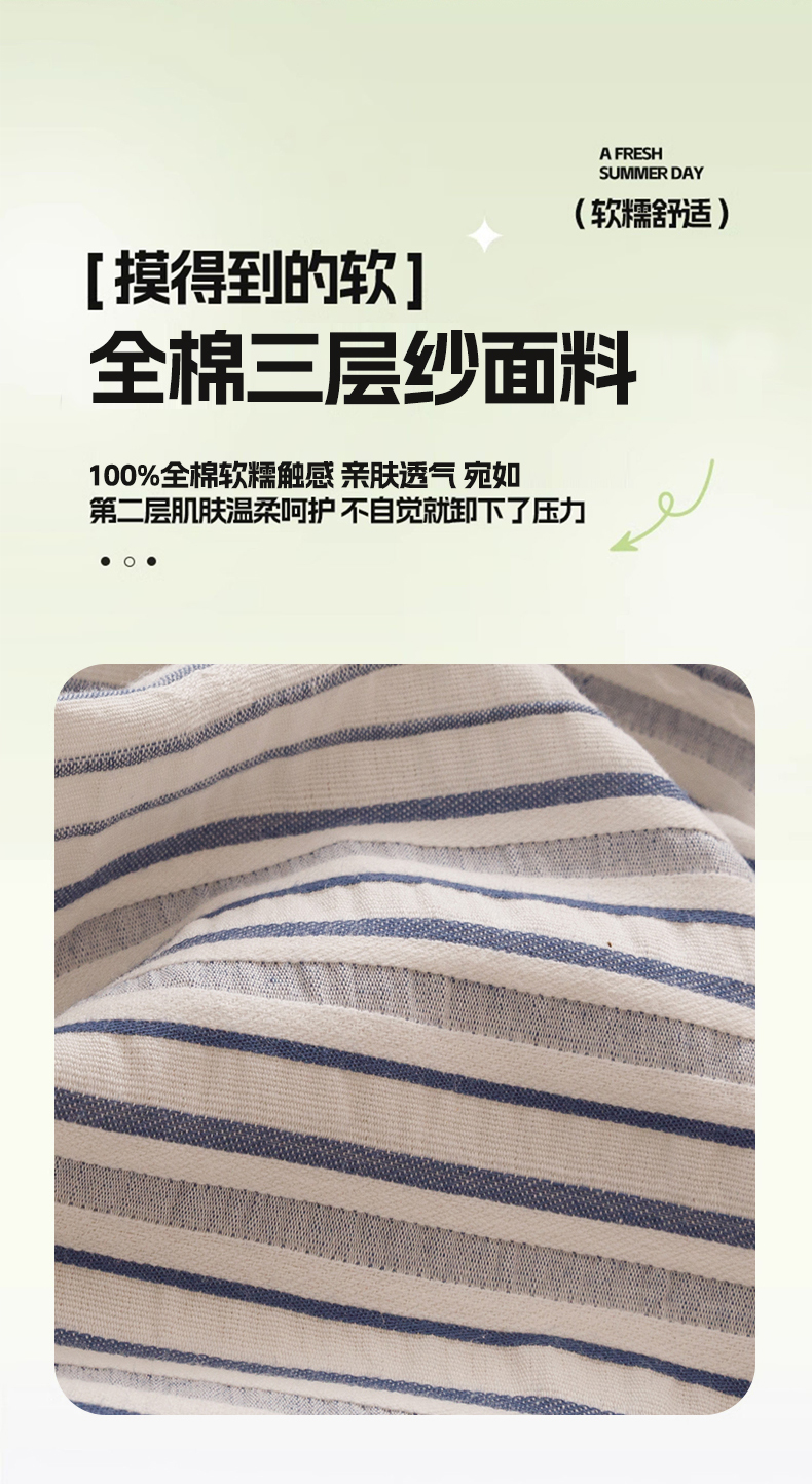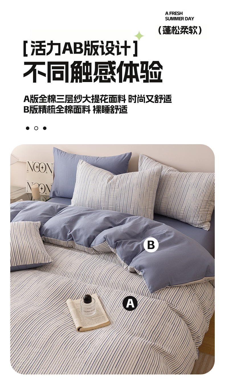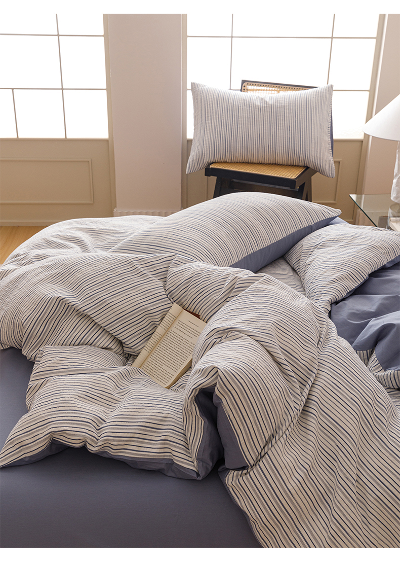 (总)忆生活家纺 2025新款全棉三层纱色织大提花条纹款四件套,初恋-樱花粉,初恋-宝石蓝,初恋-抹茶绿,初恋-奶咖色,初恋-太空灰