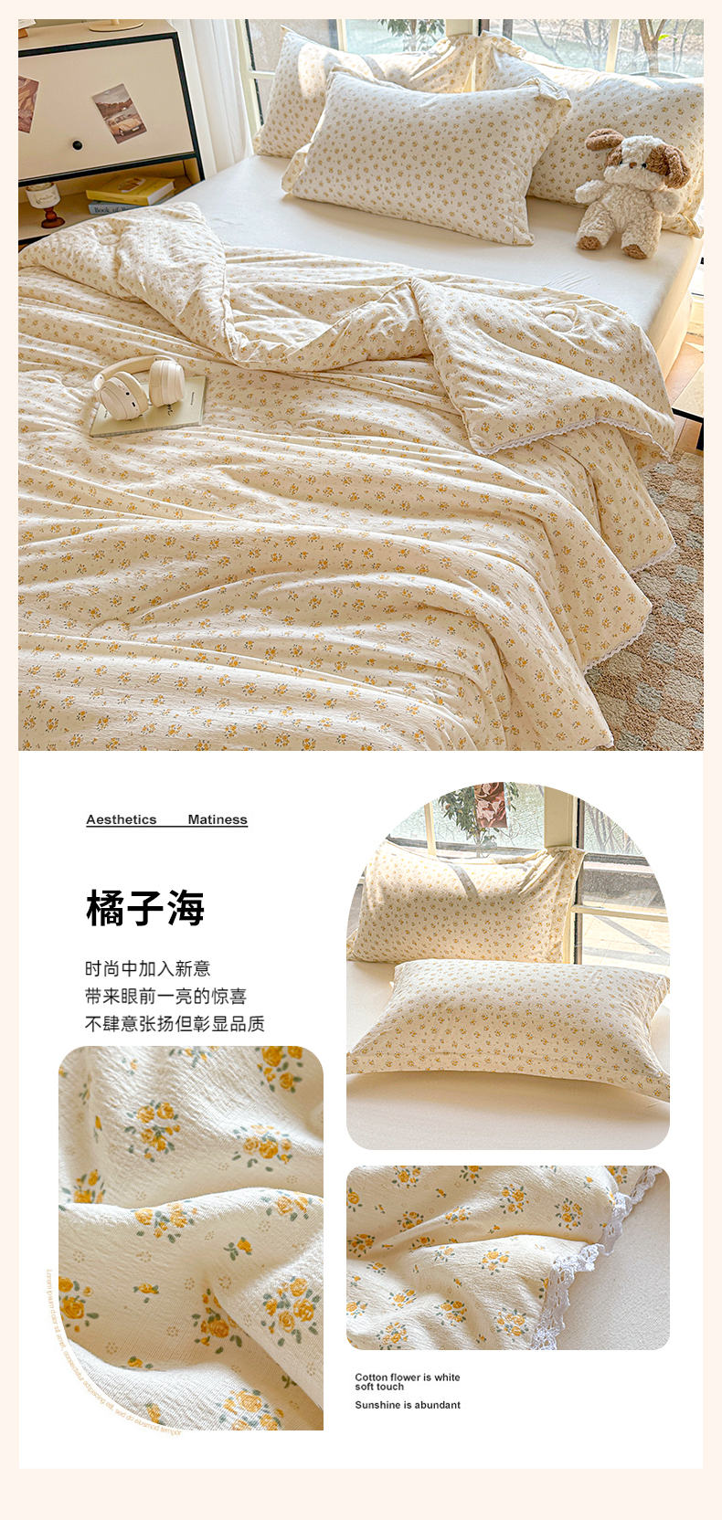 • 91家纺网 家纺一手货源 找家纺 创优  2025新款有氧双层纱小清新印花小花边夏被夏凉被可机洗空调被子被芯 橘子海