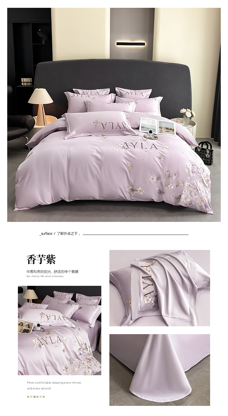 (总)博纳家纺 2025新款纯棉绣花四件套-蝶舞飞扬,象牙白,优雅紫,玉色