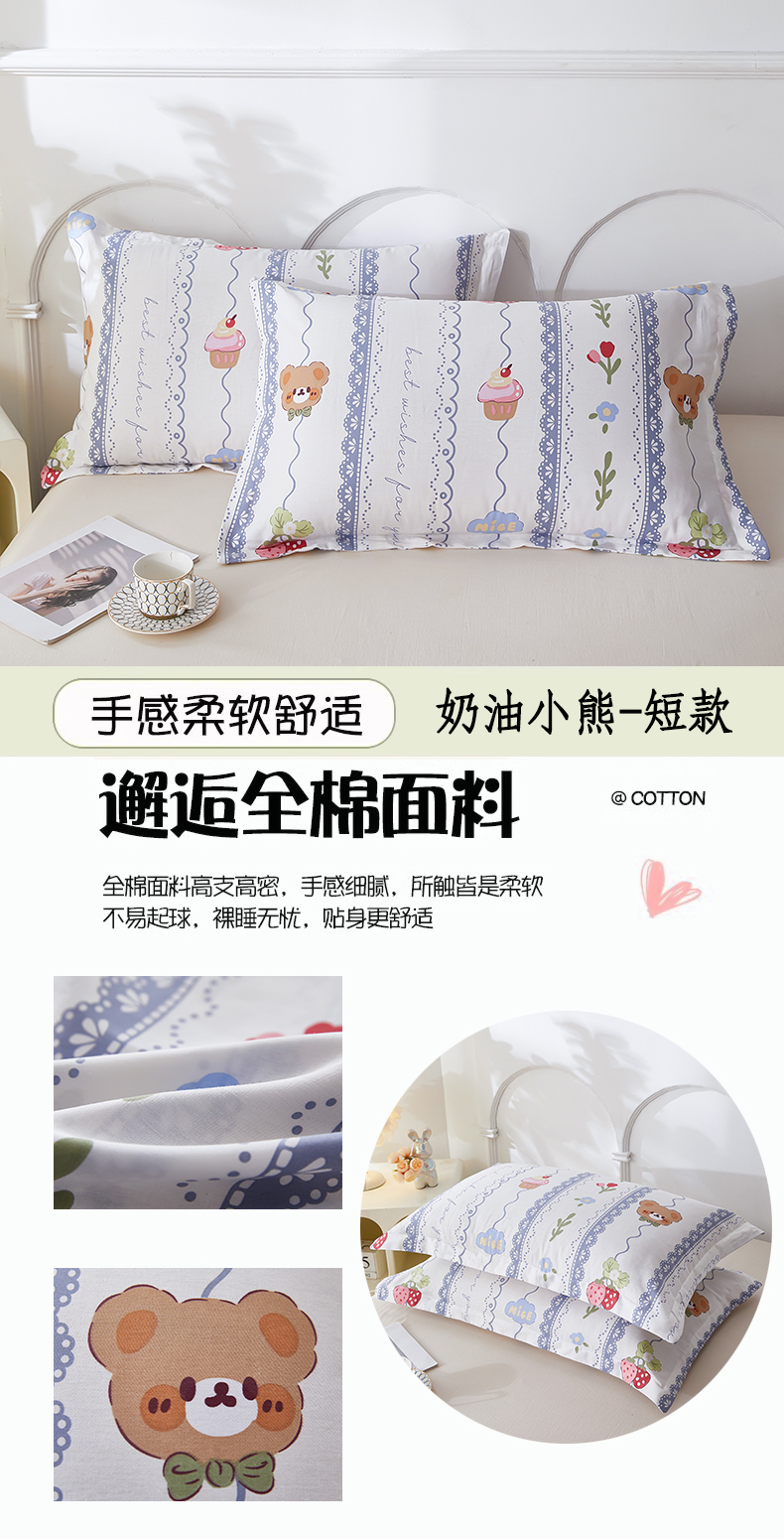 商品名称:三盛源 2025新款枕套全棉48x74cm信封一对学生宿舍纯棉枕头套枕皮单人枕芯通用 奶油小熊