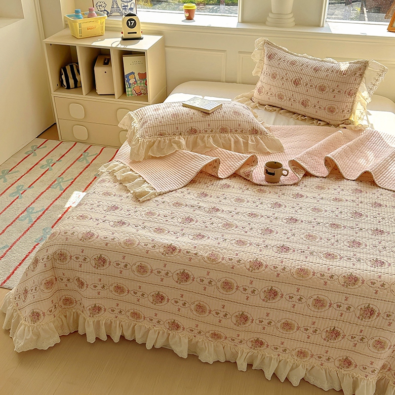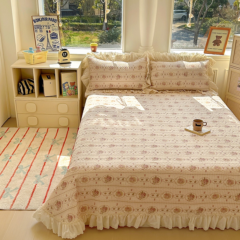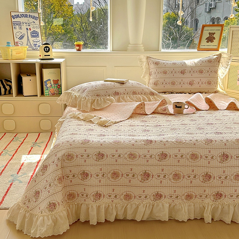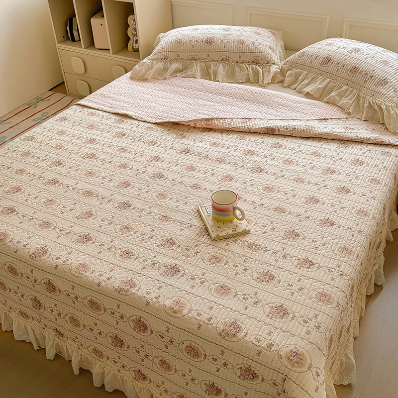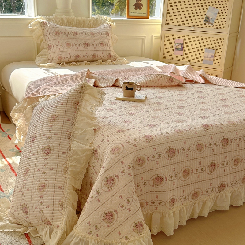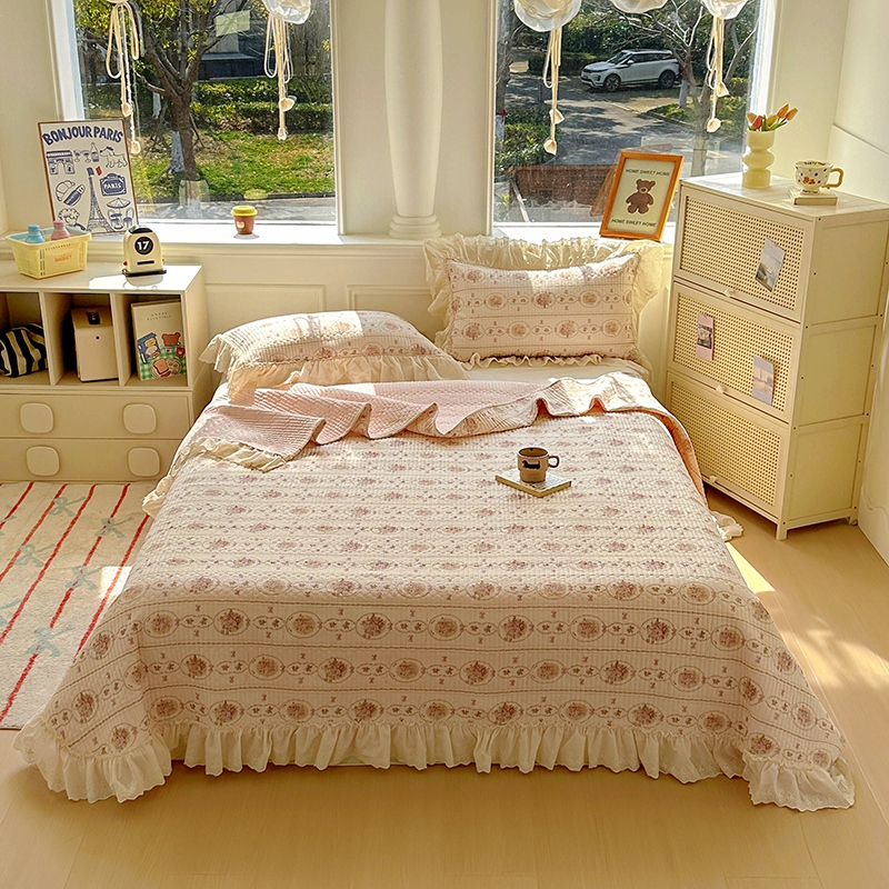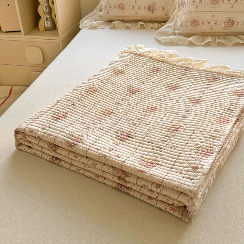 商品名称:昊川 2025新款60支全棉双层纱酵素高温砂洗法式床盖 花恋