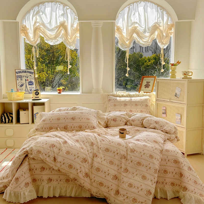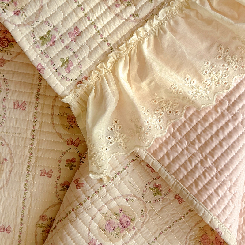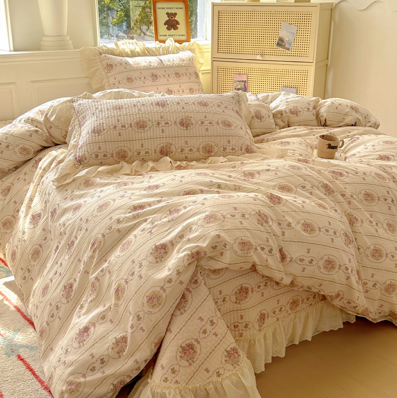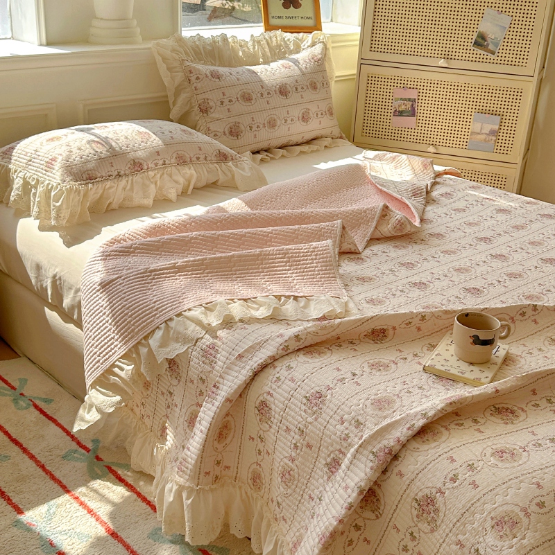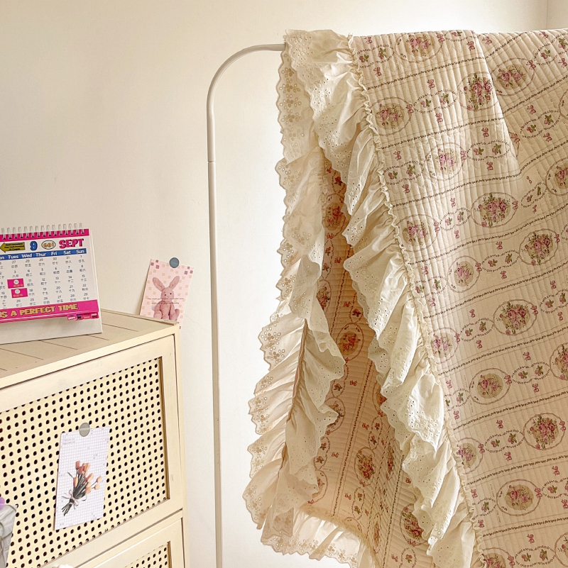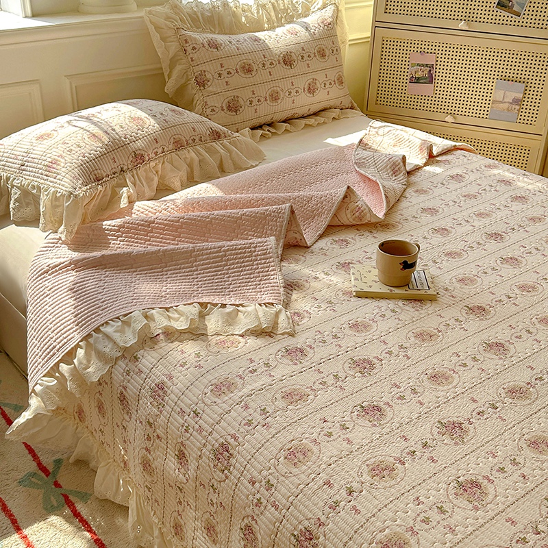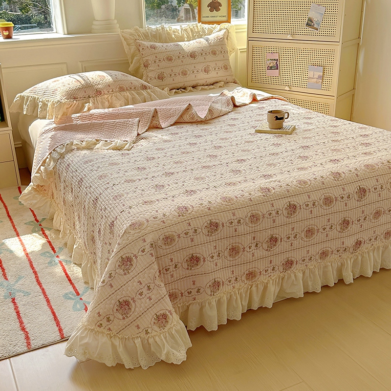 商品名称:昊川 2025新款60支全棉双层纱酵素高温砂洗法式床盖 花恋