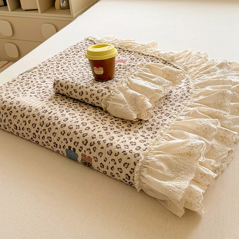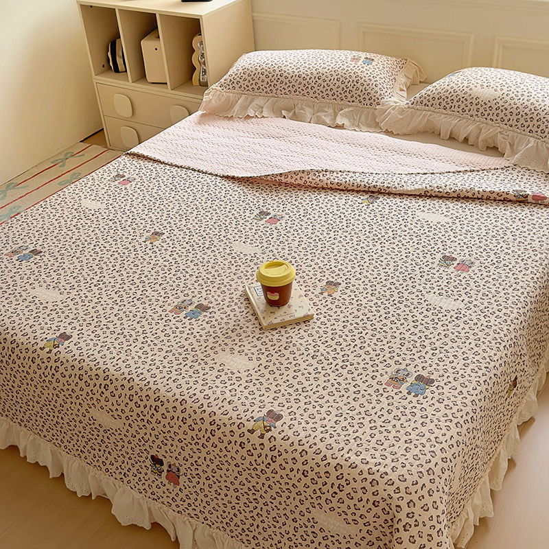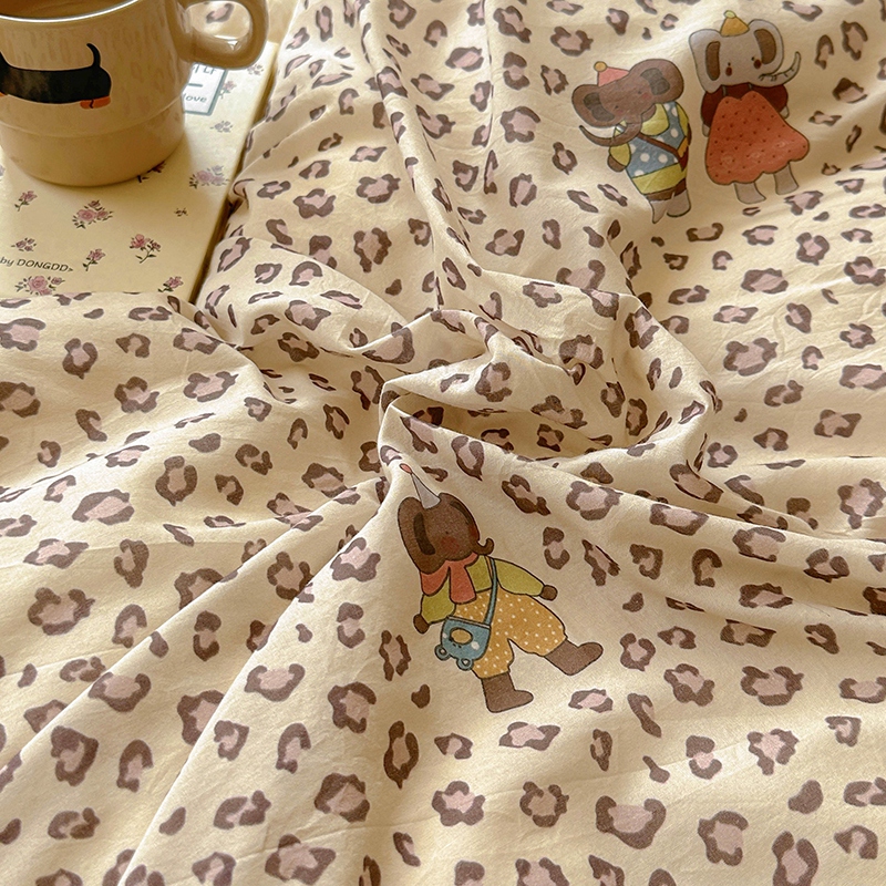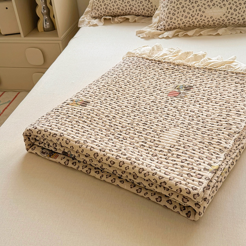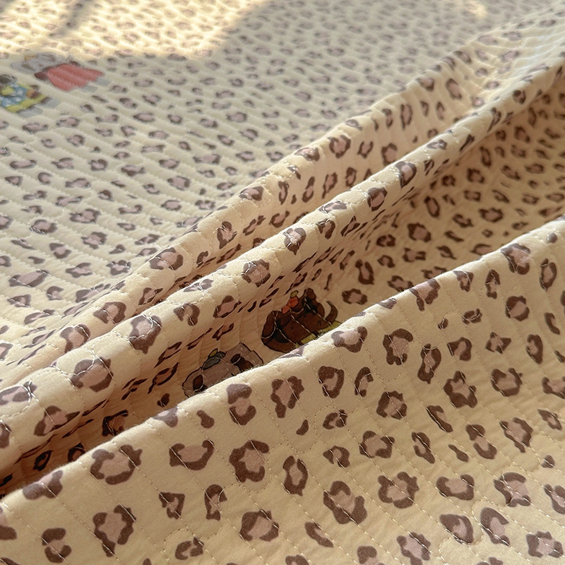 昊川 2025新款60支全棉双层纱酵素高温砂洗法式床盖 小象豹纹