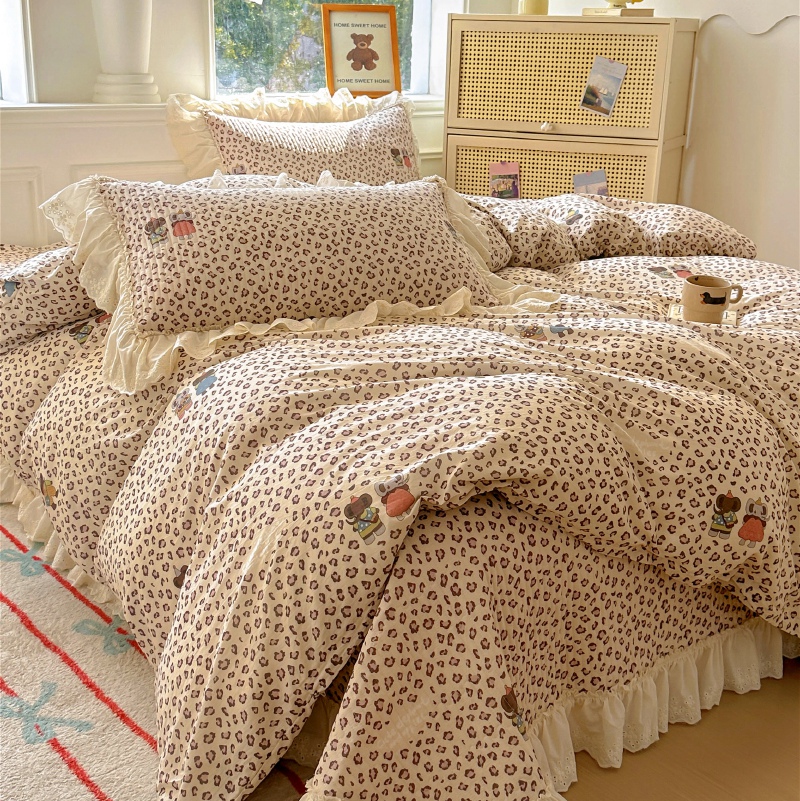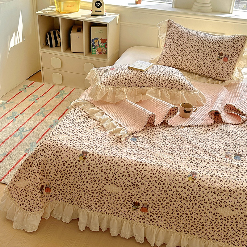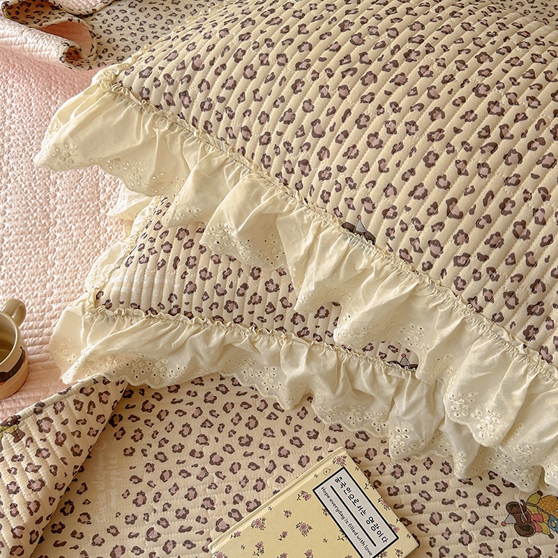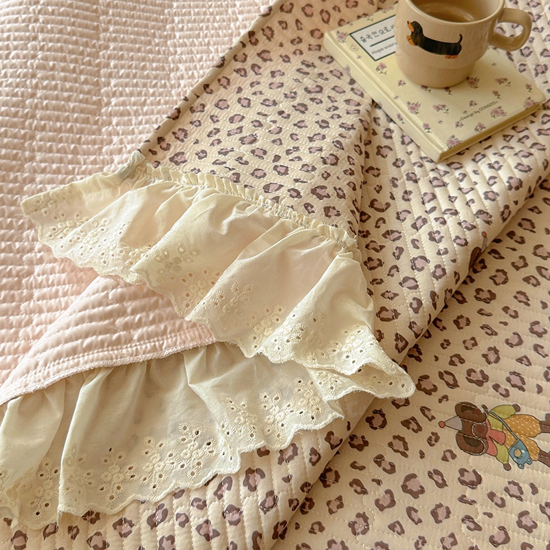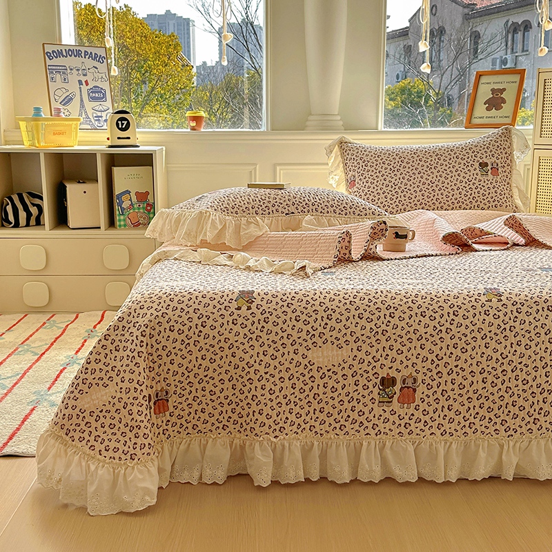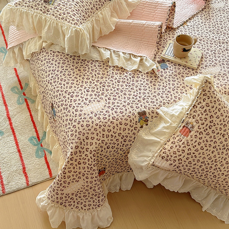 昊川 2025新款60支全棉双层纱酵素高温砂洗法式床盖 小象豹纹