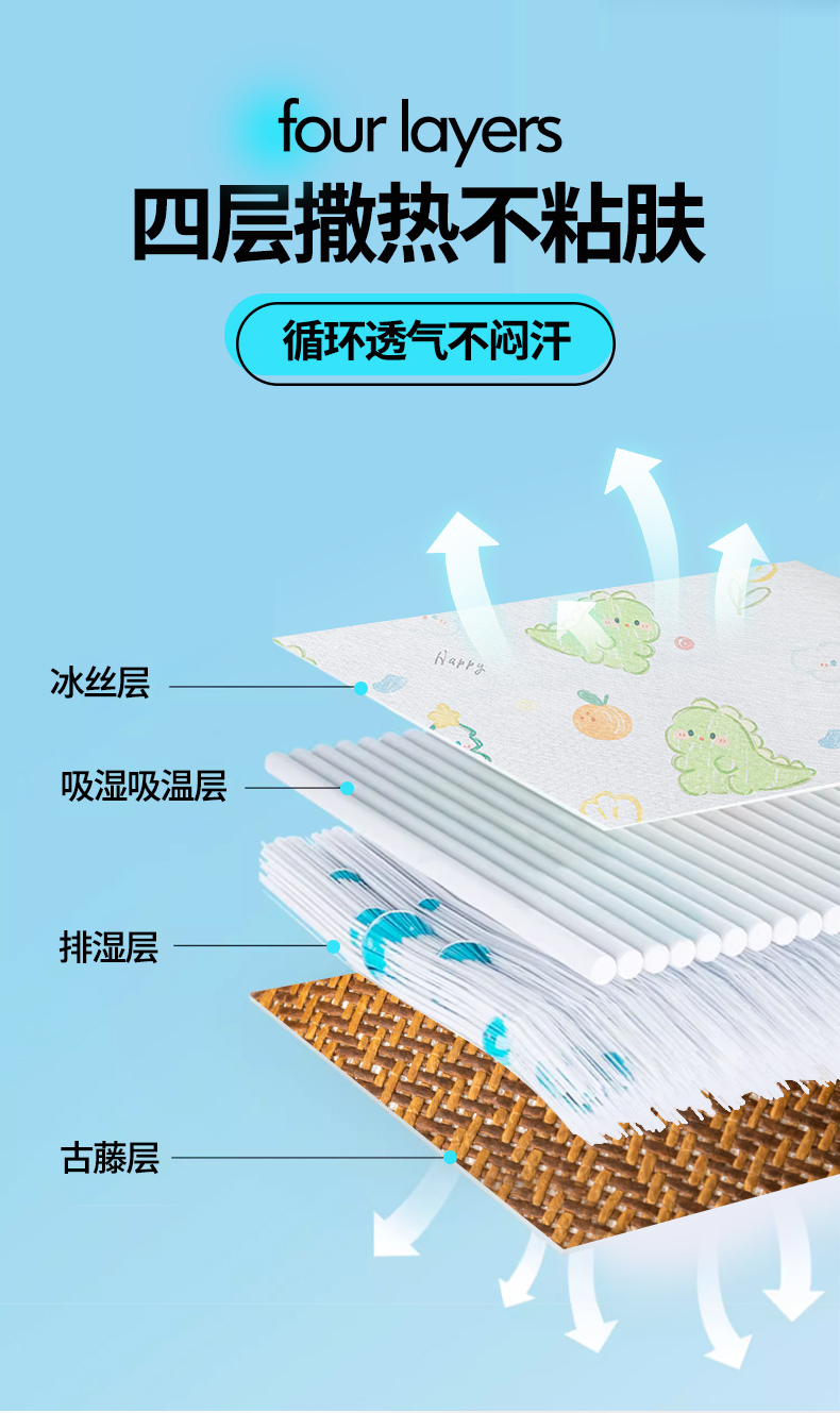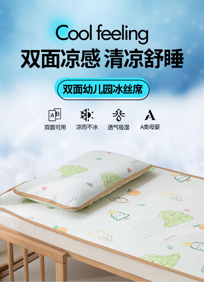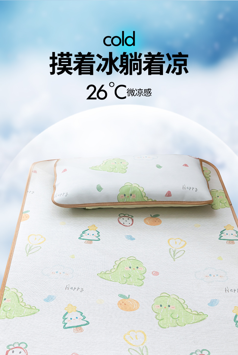当前位置: 91家纺网 > 商品网购 > 床上用品 > 凉席 > 冰丝席 > 嗨生活 2025新款古藤席冰丝席双面可用儿童凉席幼儿园凉席双面凉感 清凉熟睡凉席 多彩恐龙