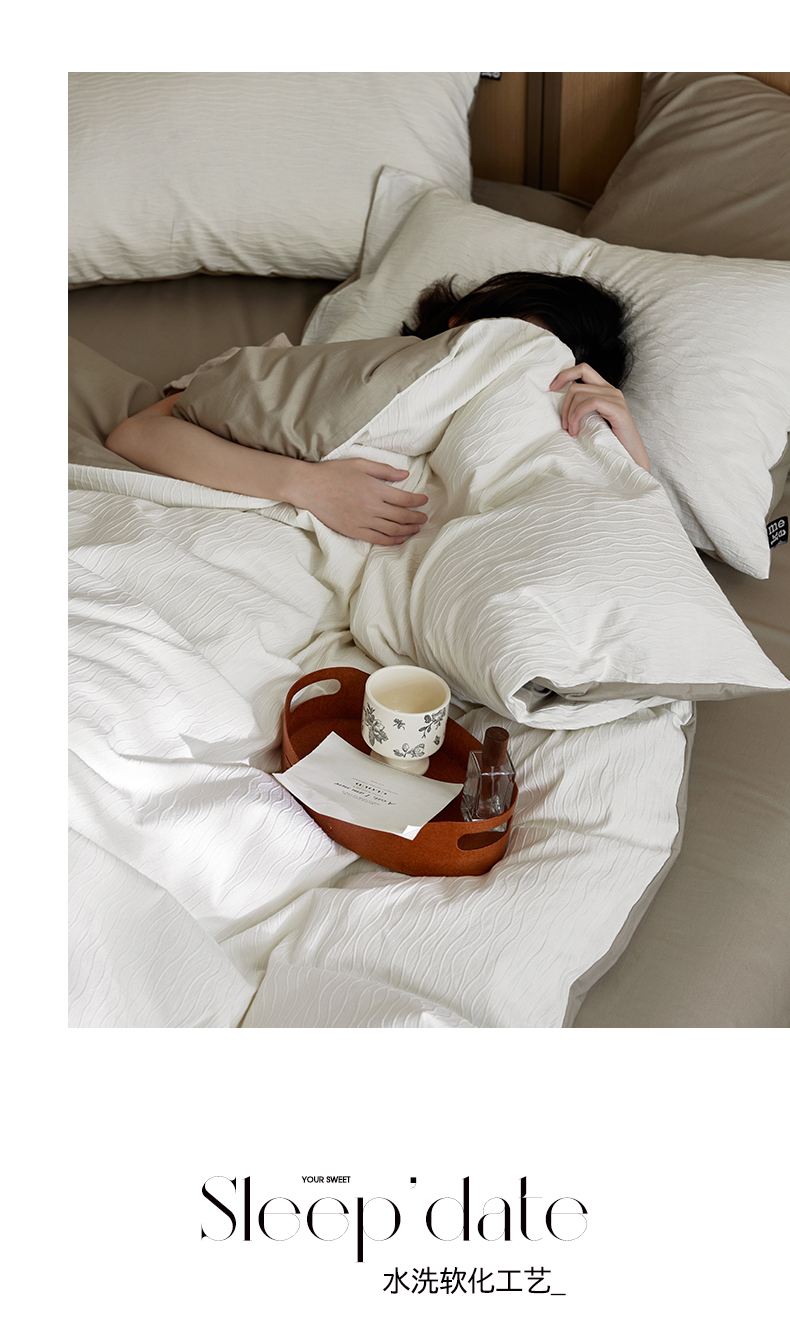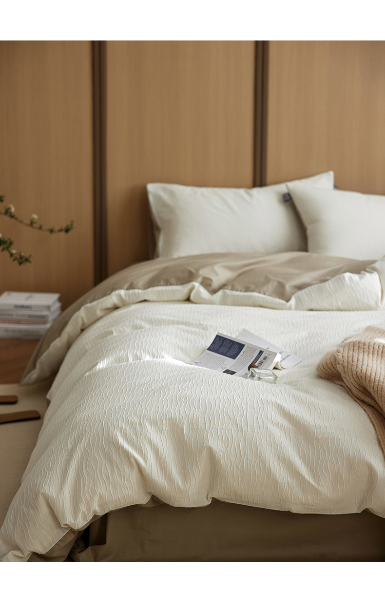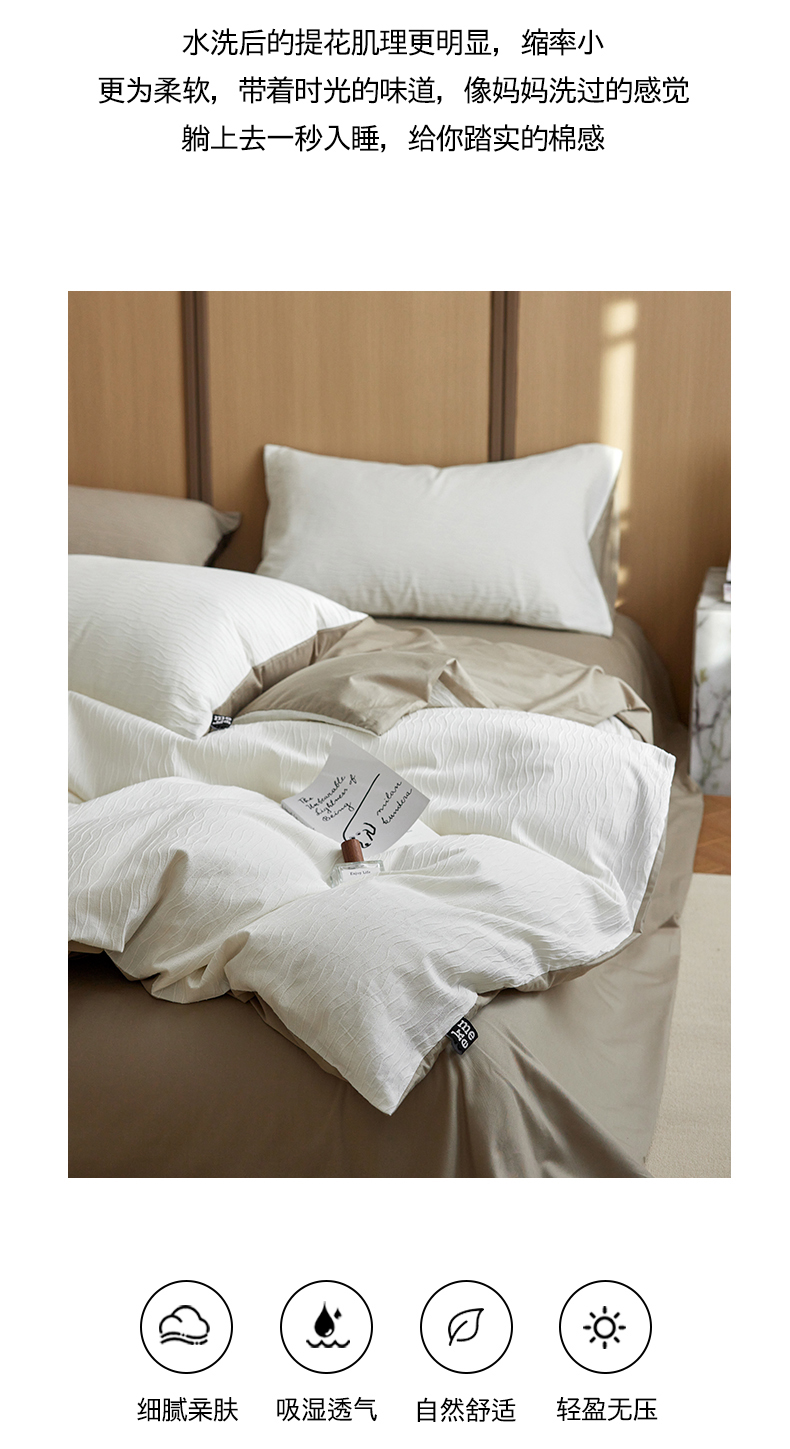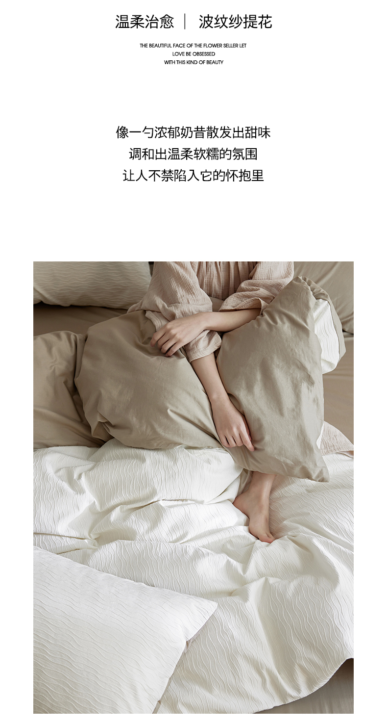 当前位置: 91家纺网 > 商品网购 > 床品套件 > 四件套 > 全棉普通四件套 > 风向标家纺 2025新款全棉波纹纱提花原木风四件套 波纹纱-云初白