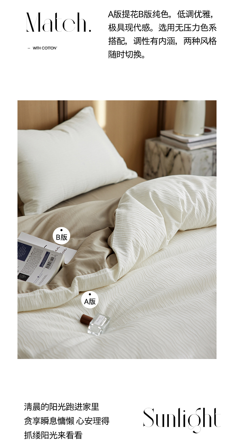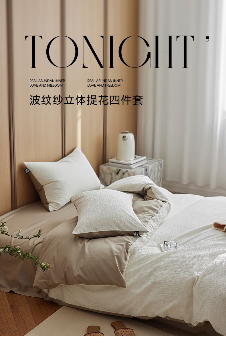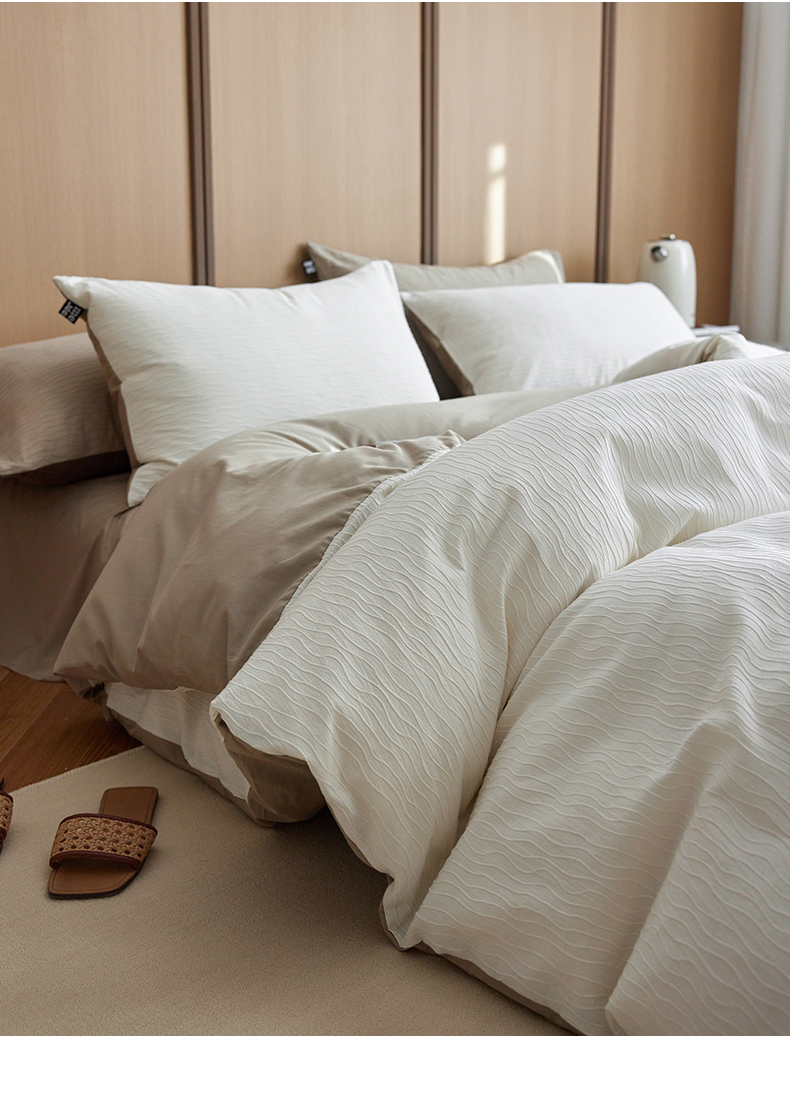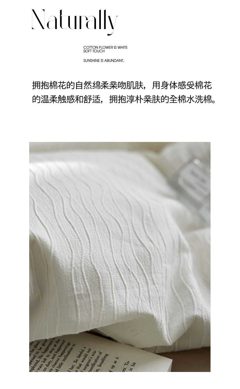 当前位置: 91家纺网 > 商品网购 > 床品套件 > 四件套 > 全棉普通四件套 > 风向标家纺 2025新款全棉波纹纱提花原木风四件套 波纹纱-云初白