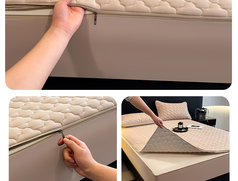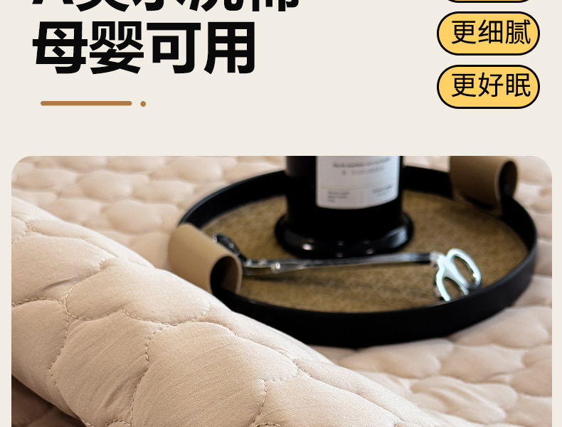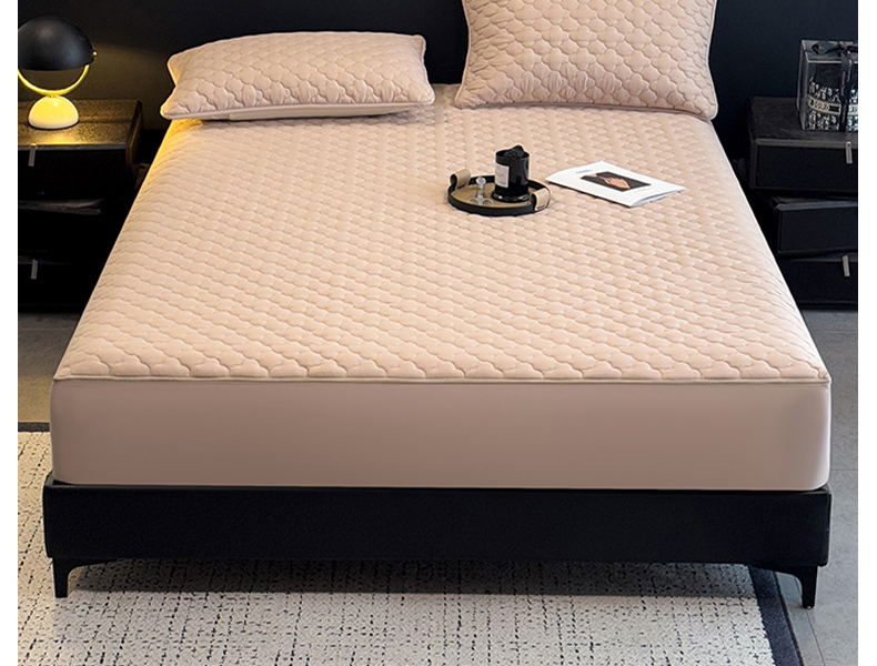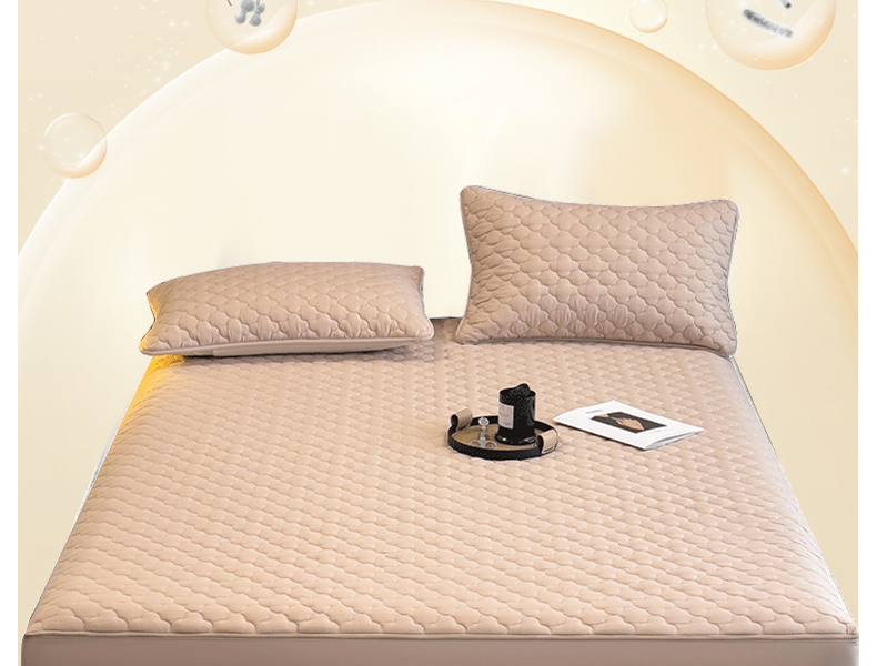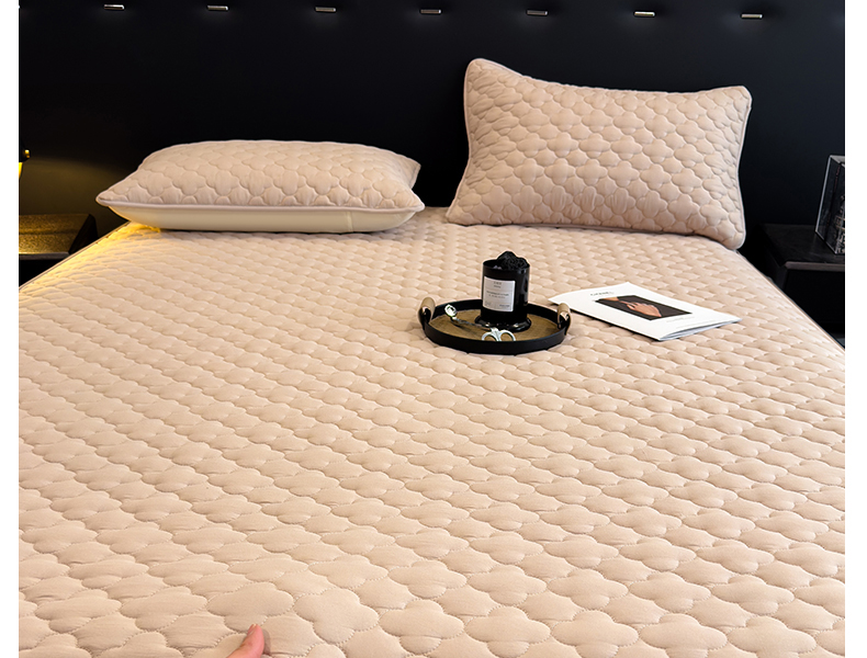 • 91家纺网 家纺一手货源 找家纺 叠派家纺 2025新款5A抗菌A类夹棉床笠经典款防水款系列 米色-梅花经典款