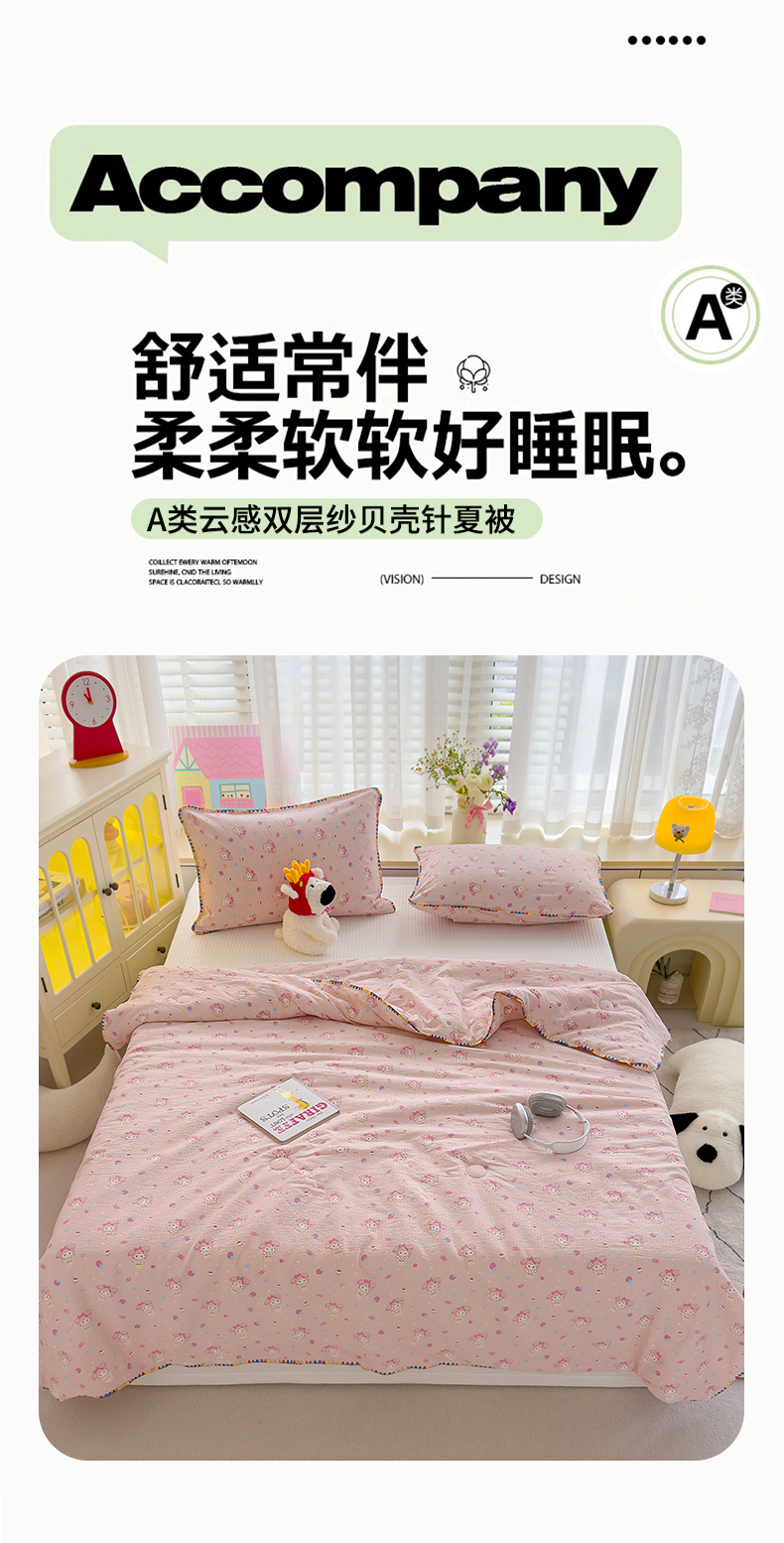商品名称:贝扬思 2025新款云感双层纱抗菌贝壳边夏被 贝壳边-小美冰激凌