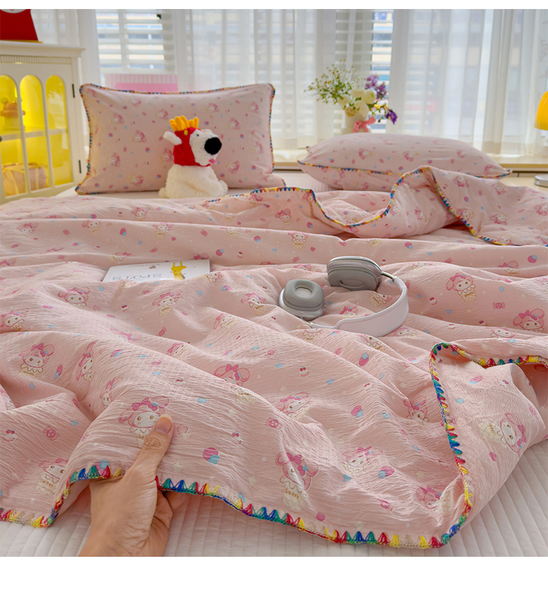 (总)贝扬思家纺 2025新款水洗棉毛巾绣夏被四件套-三丽鸥Star系列,Star-粉星星kt,Star-可爱鬼库洛,Star-蓝星星kt,Star-绿格大眼蛙,Star-马卡龙美乐蒂,Star-贪吃玉桂狗,Star-淘气帕恰狗,Star-甜甜库洛米,Star-樱桃玉桂狗
