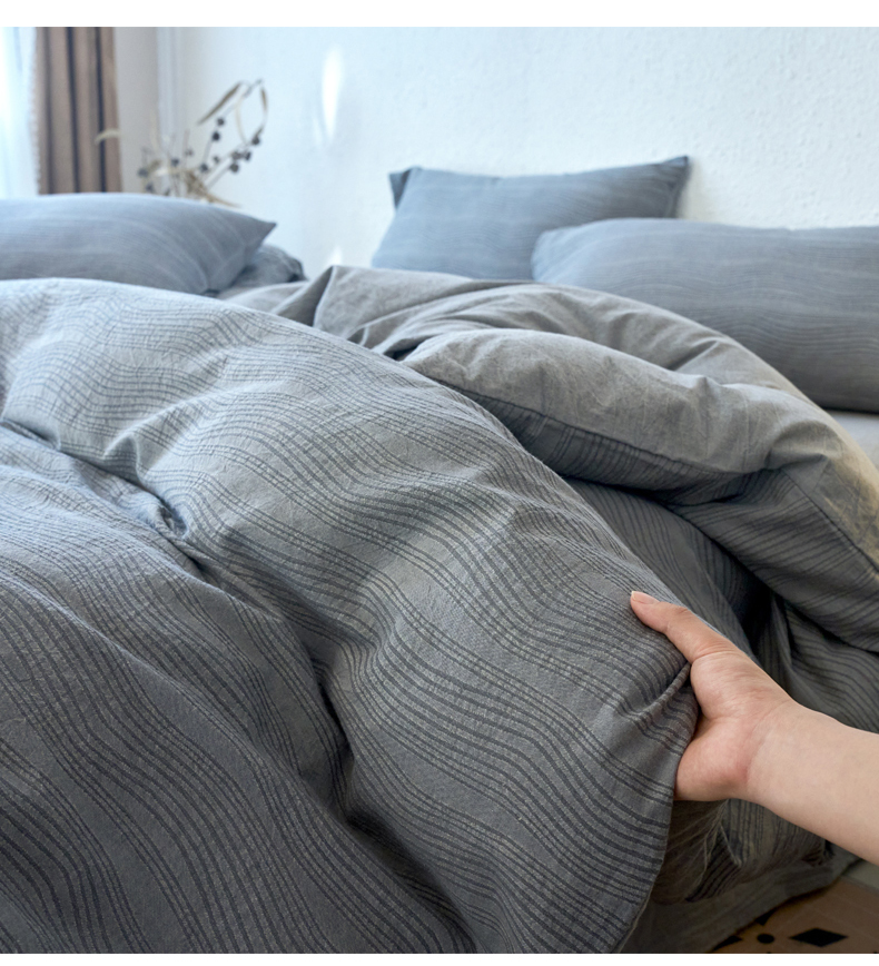 商品名称:恋人优选 2025新款A类全棉色织水洗棉提花四件套 大波浪灰