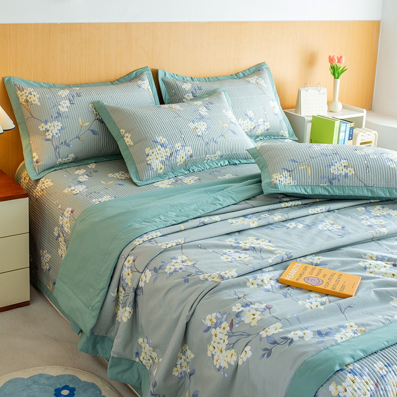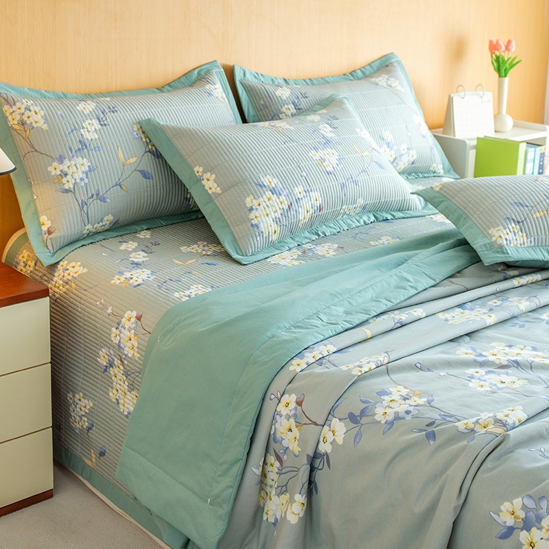 晨晨家纺2025新款双面全棉床盖款三件套 青棠
