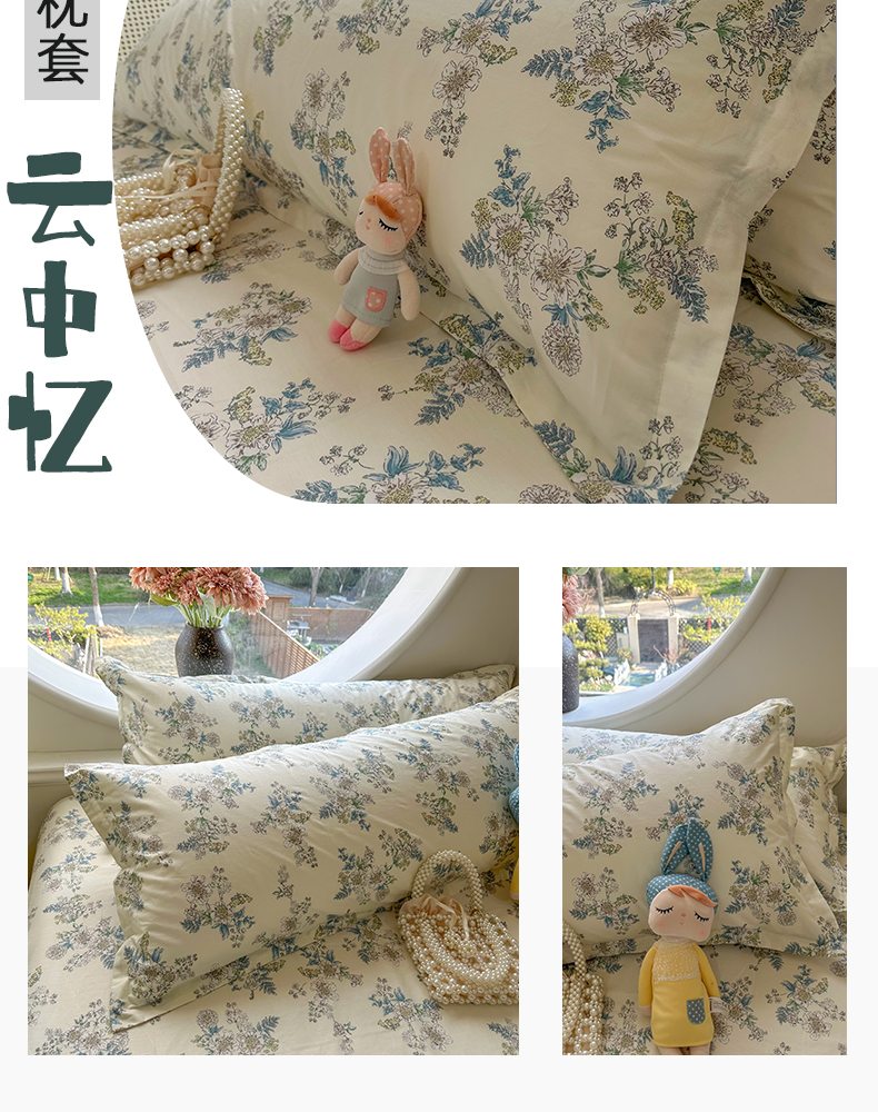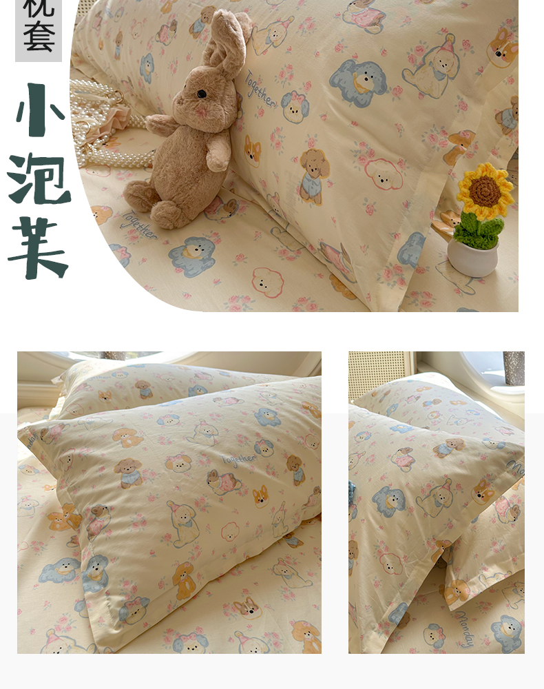 (总)百寐 2023新款全棉13372纯棉碎花小清新卡通枕套,爱心狗,奥汀,初夏,丛林兔,菲菲兔,后花园,花蜜,花悦,画意,兰溪,蘑菇林,秋香,心心熊,紫薇, 笑脸