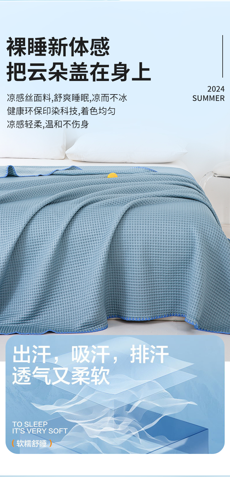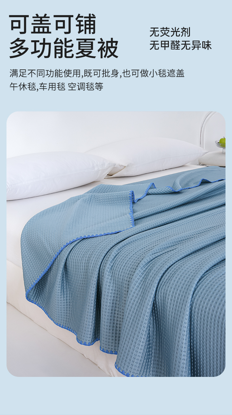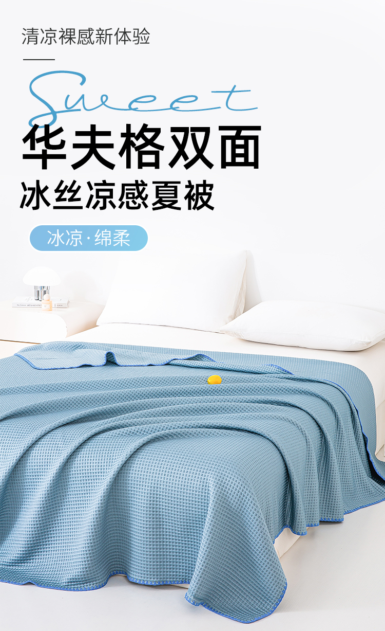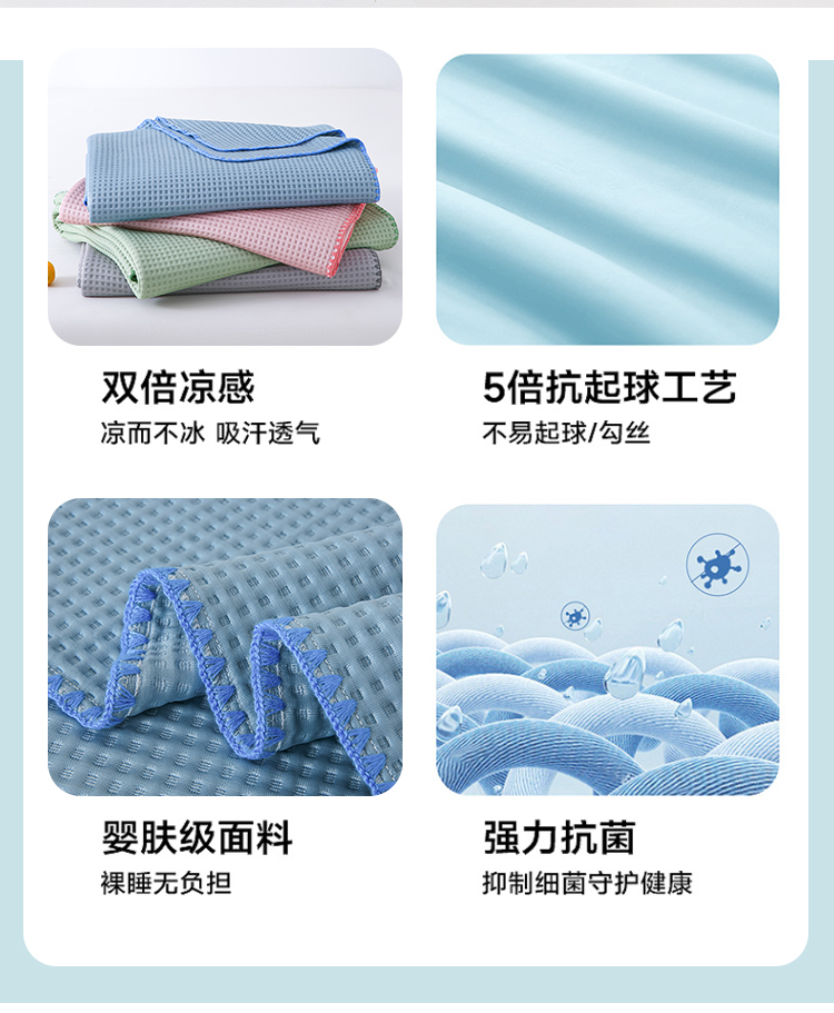 (总)2025新款华夫格夏被双面凉感冰丝多功能双面用夏凉被,双面凉感蓝色,双面凉感绿色,双面凉感玉色,双面凉感浅灰色