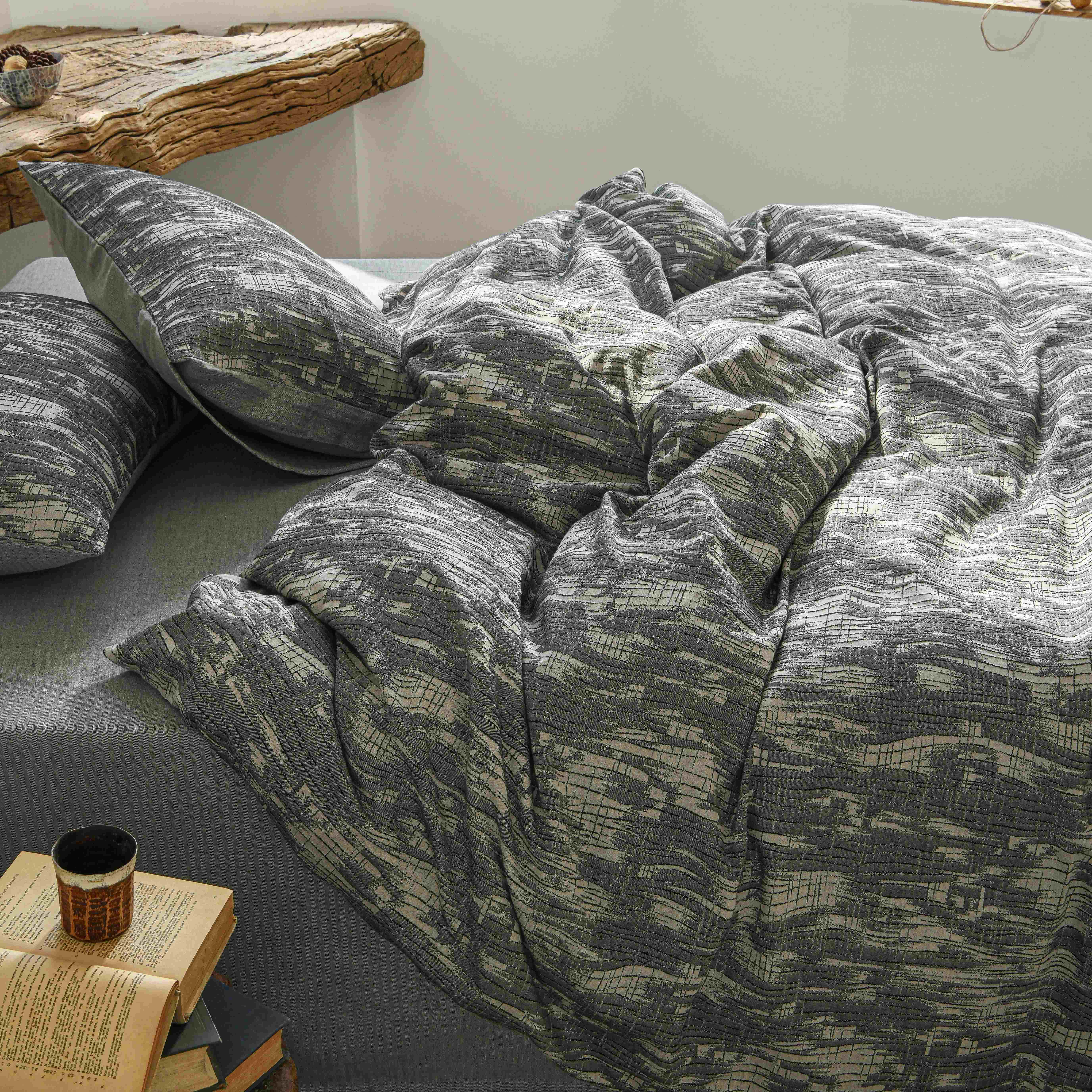 商品名称:云上 2025全棉色织大提花床品·侘寂潮汐 潮汐-黑灰