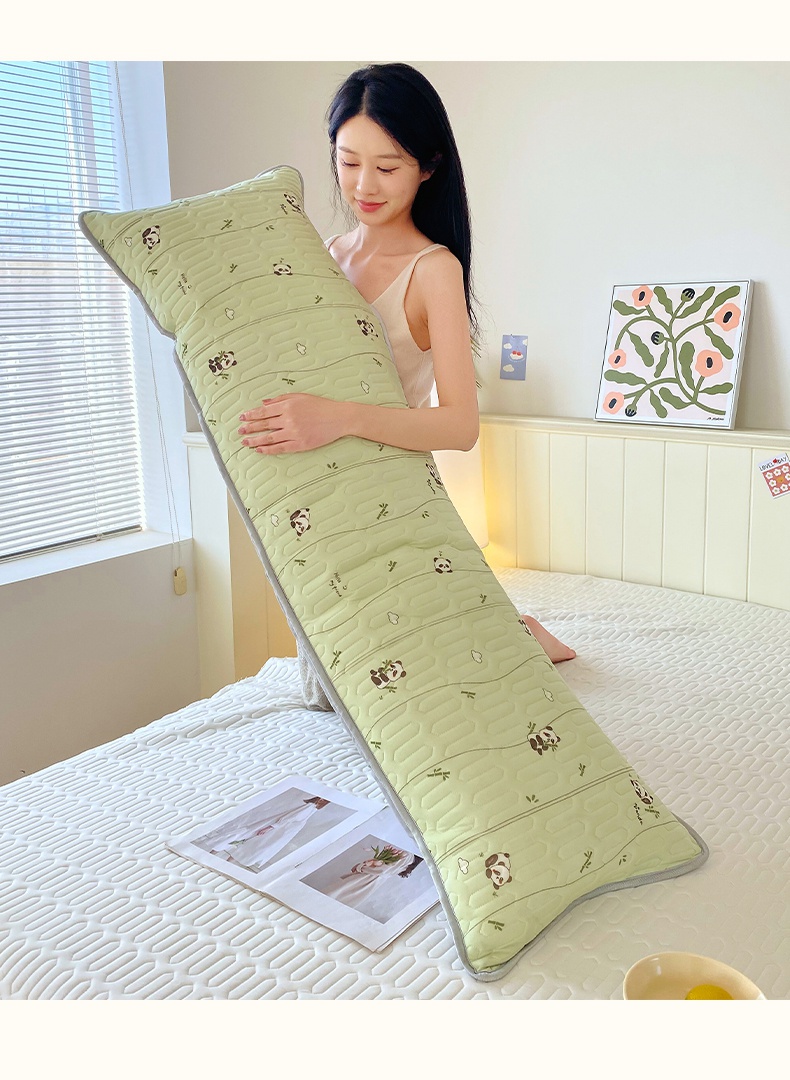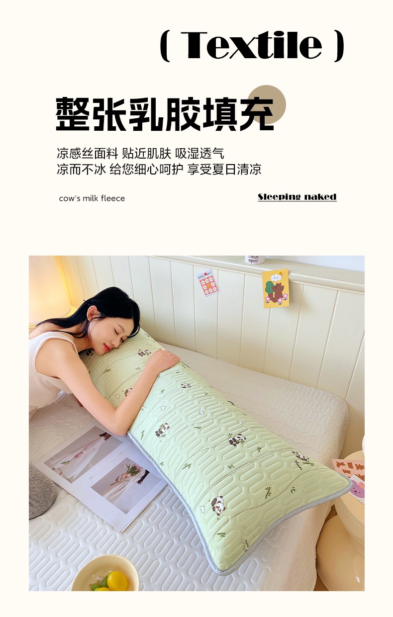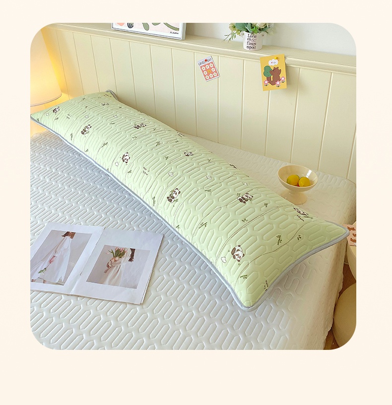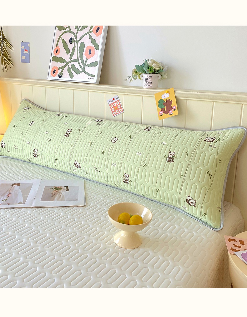 雨彤家纺 2025年新款A类乳胶凉感丝双人长枕套 熊猫宝宝-翠绿