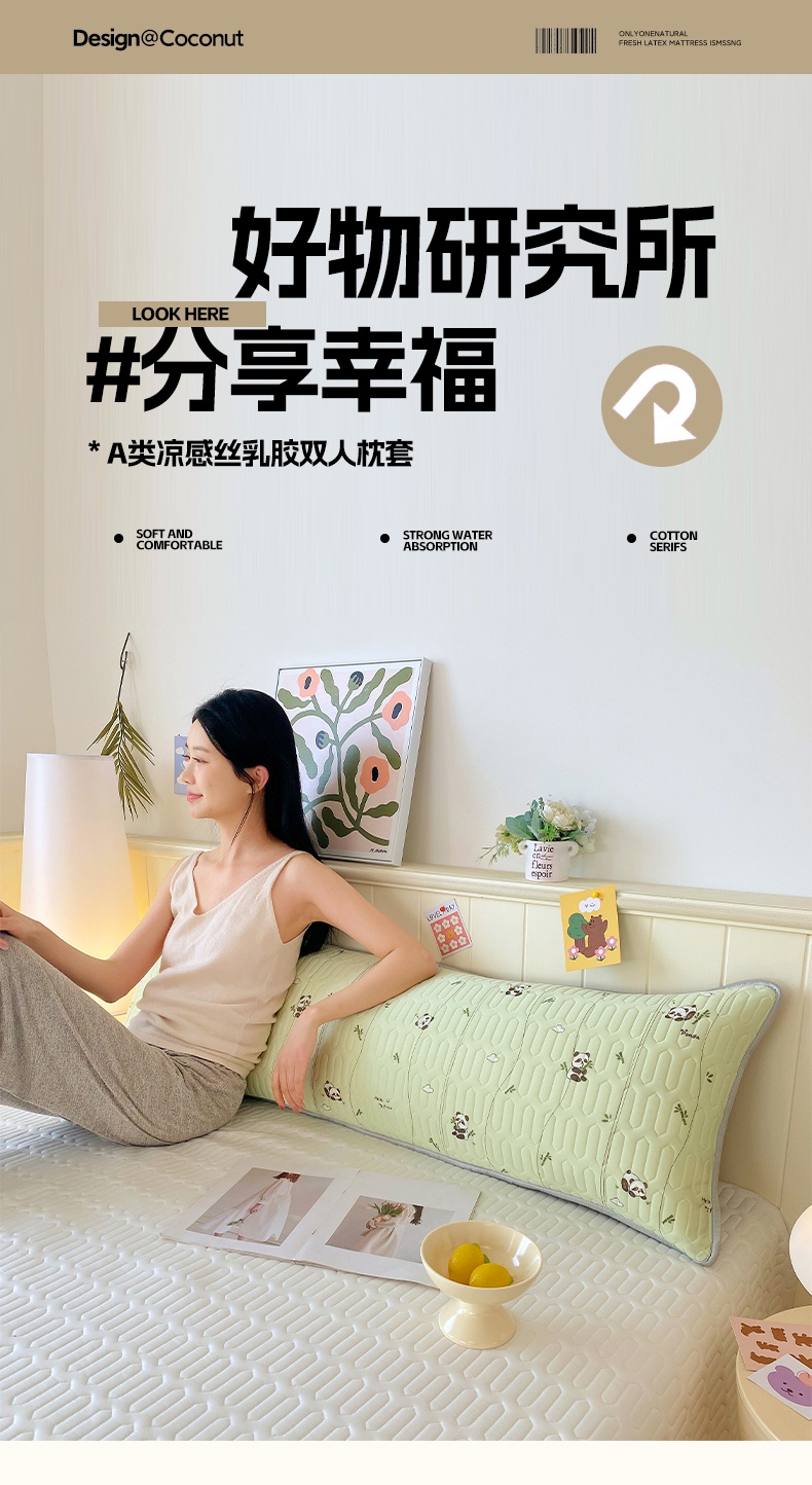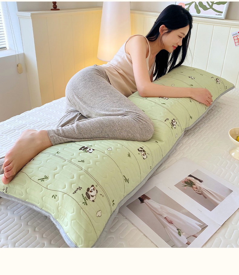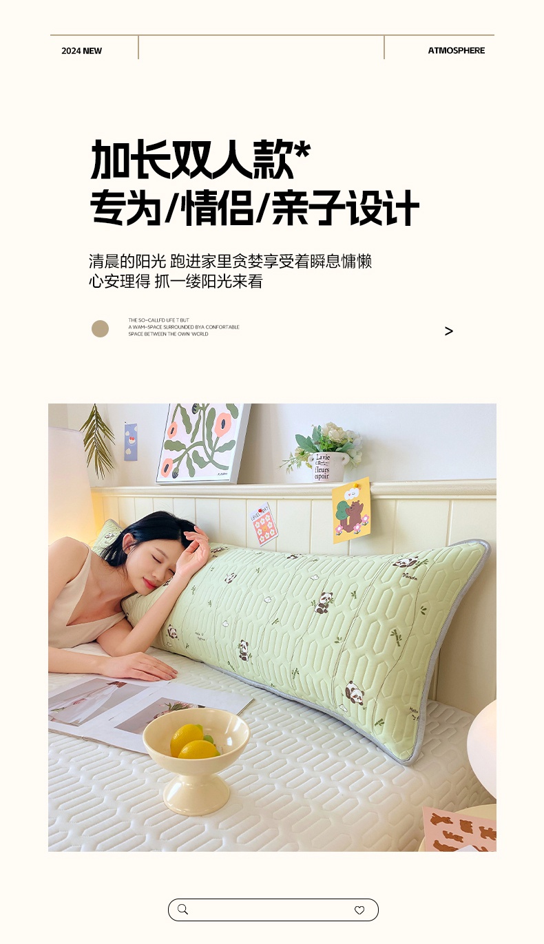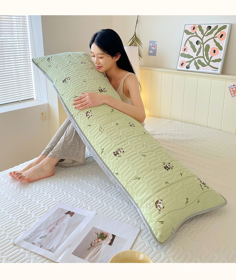 雨彤家纺 2025年新款A类乳胶凉感丝双人长枕套 熊猫宝宝-翠绿