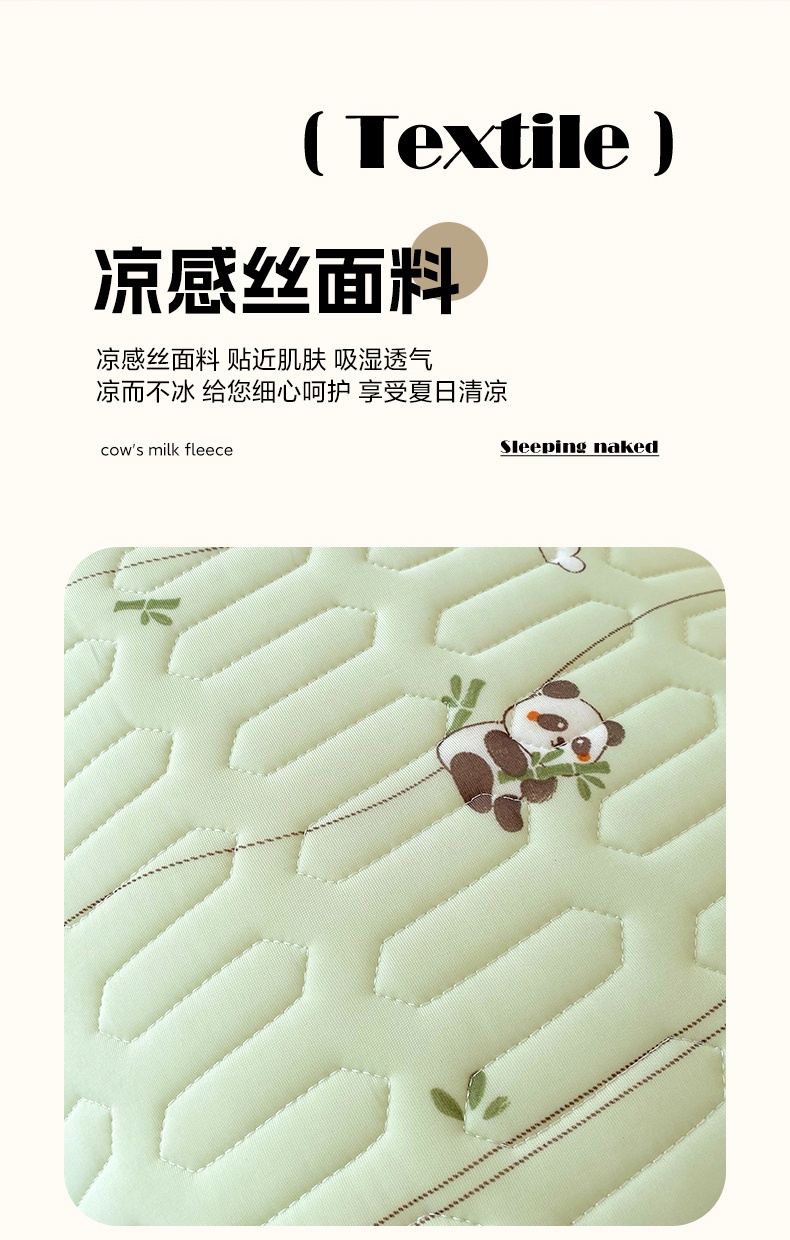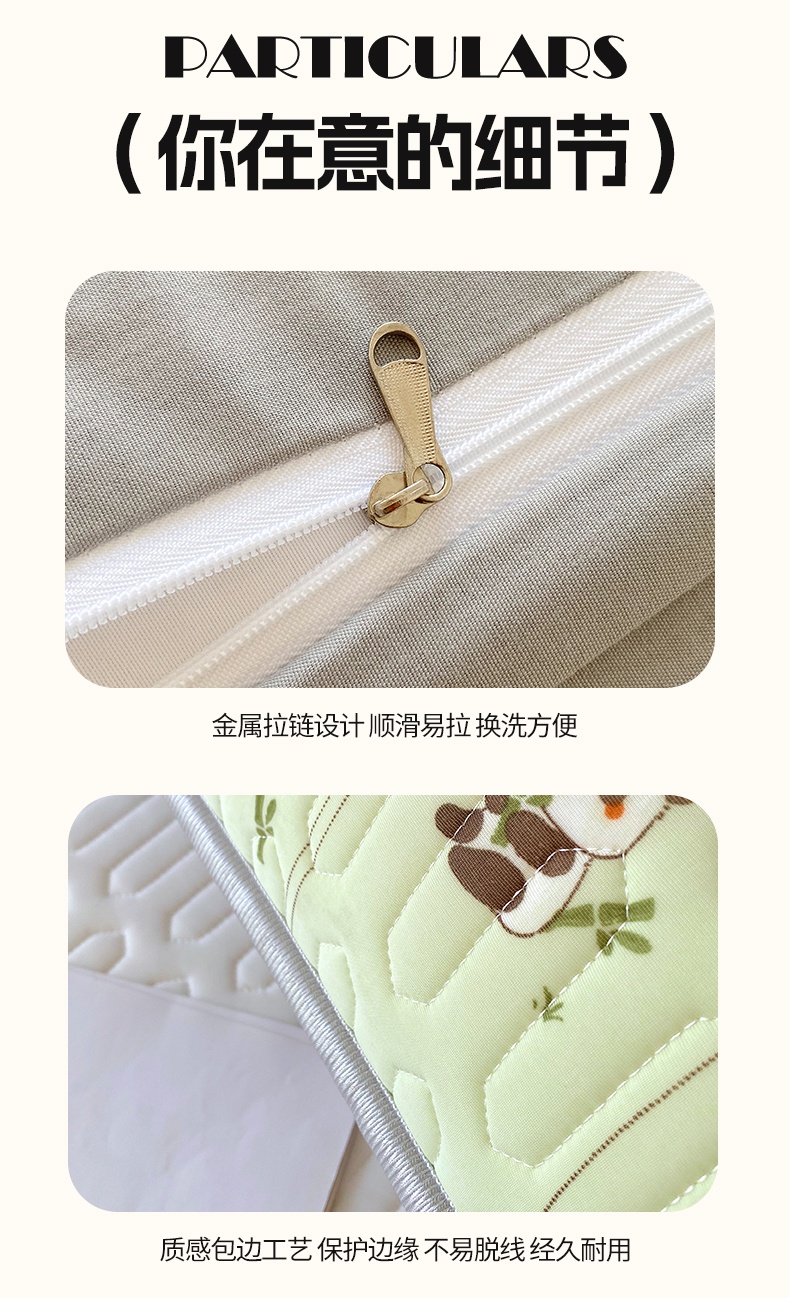 商品名称:雨彤家纺 2025年新款A类乳胶凉感丝双人长枕套 熊猫宝宝-翠绿