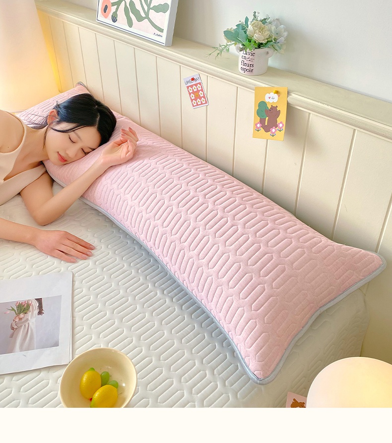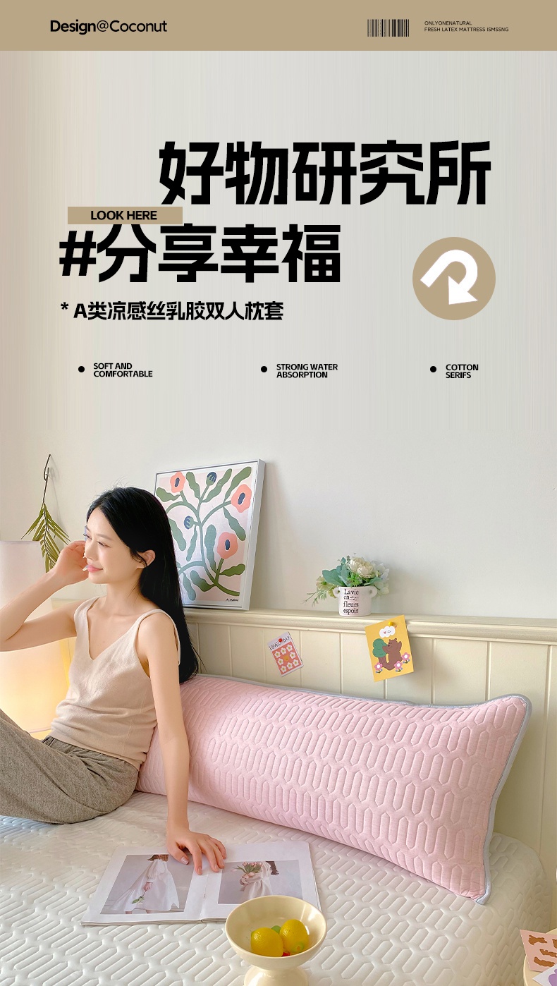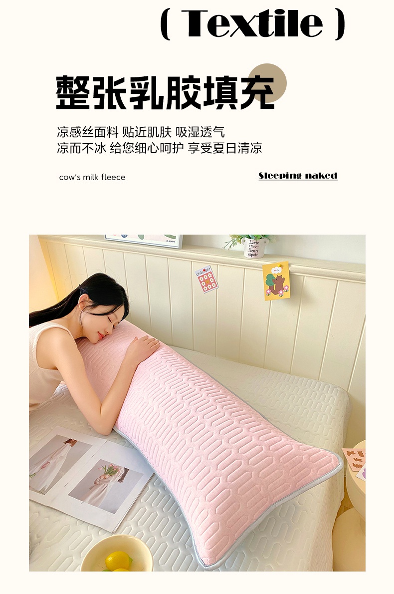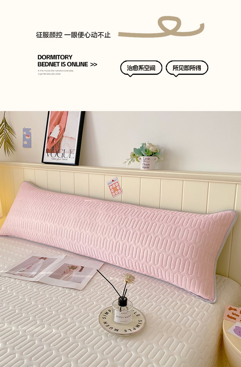 商品名称:雨彤家纺 2025年新款A类乳胶凉感丝双人长枕套 肌理纹-粉
