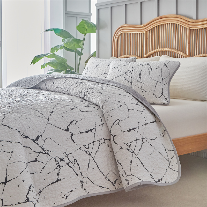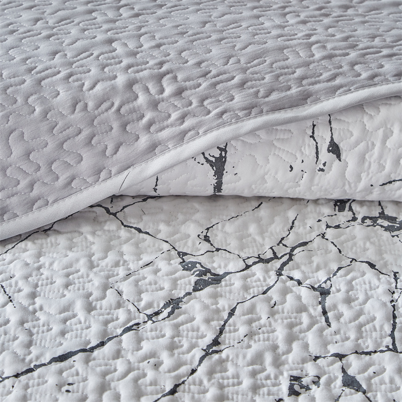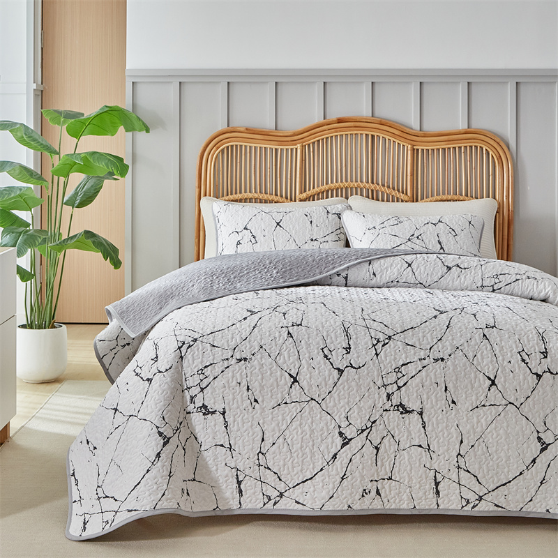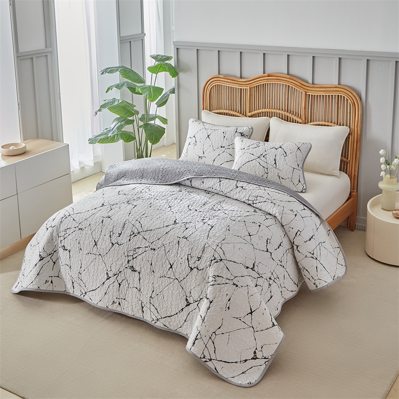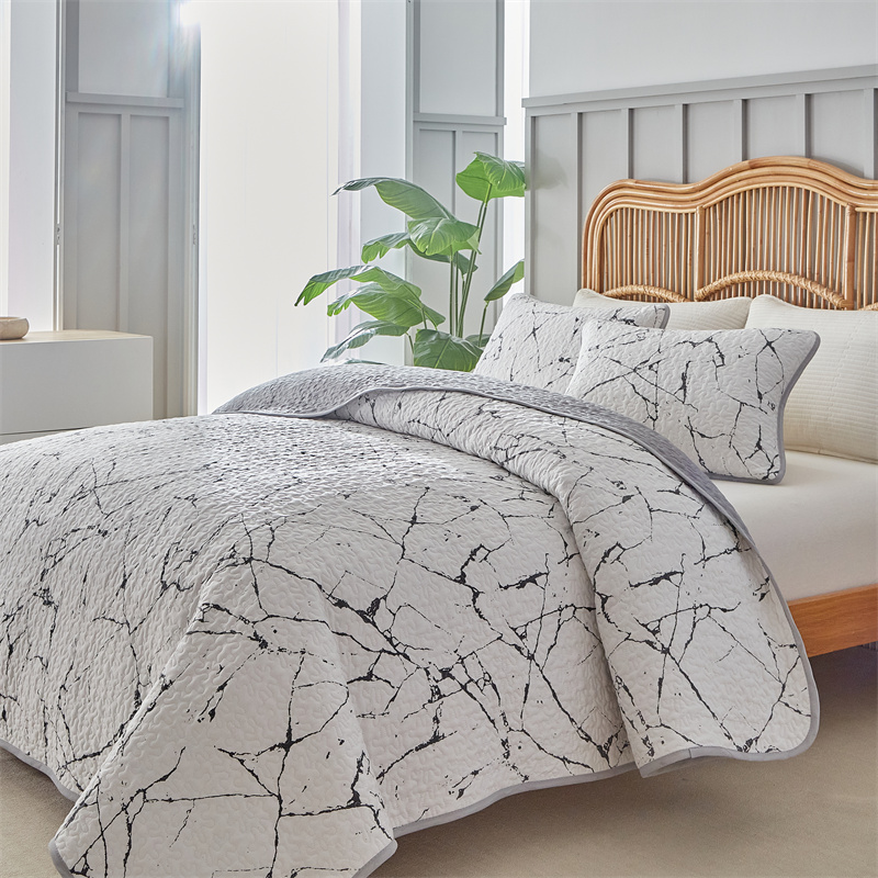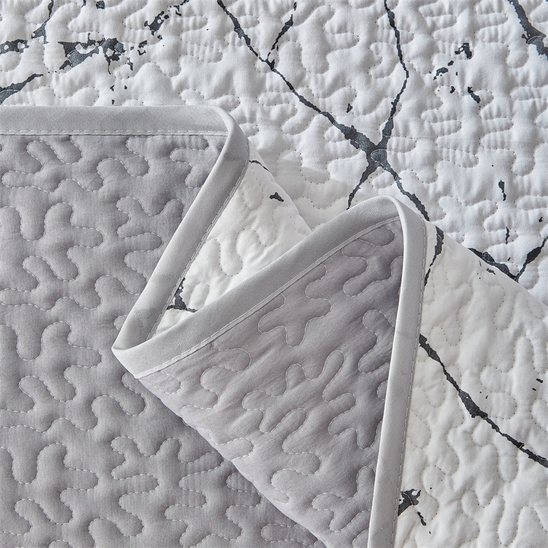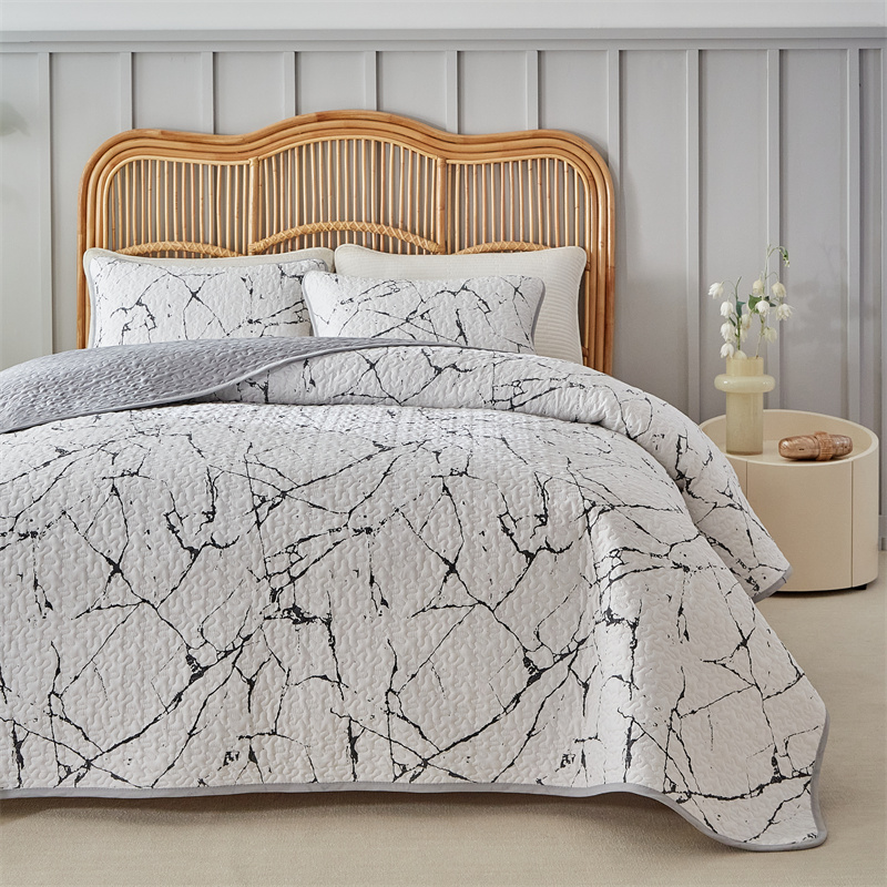温宁家纺 2025新款跨境双面化纤水洗棉传统印花夹棉四季床盖 抽象黑白