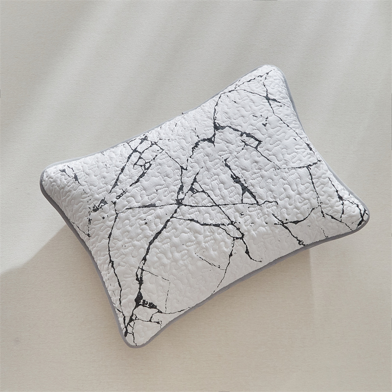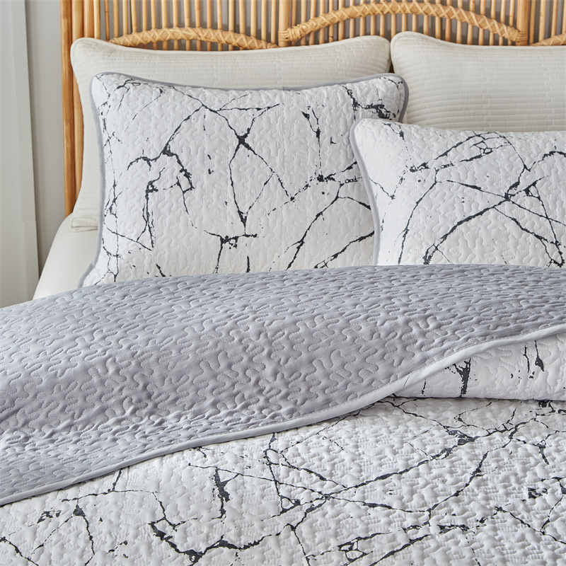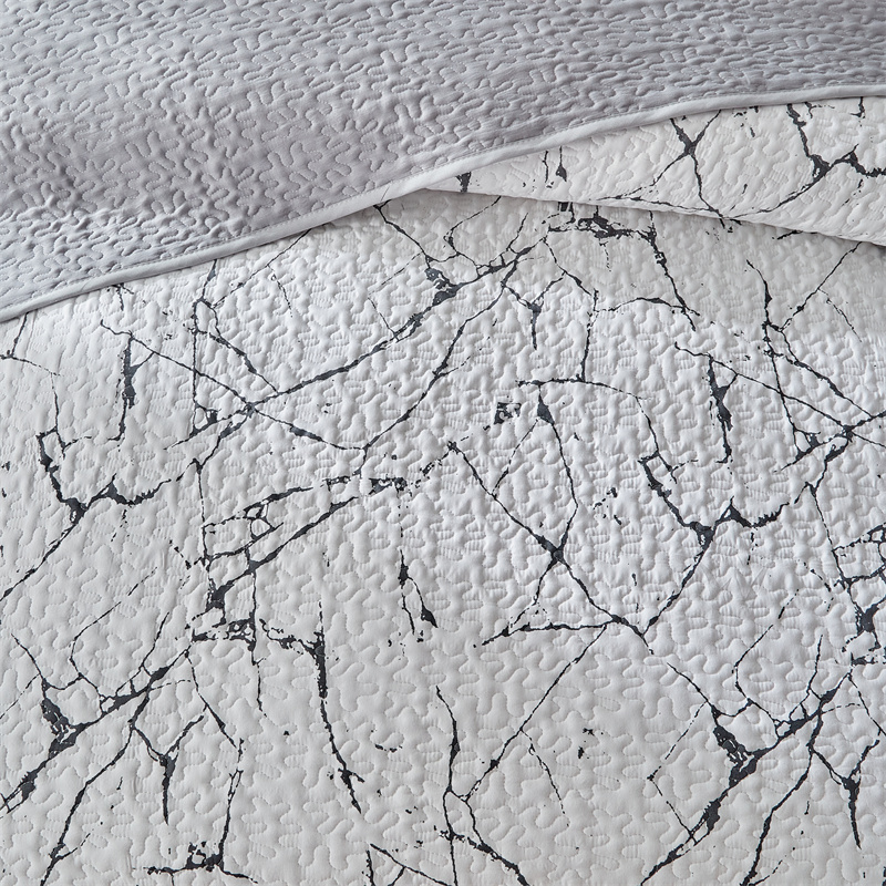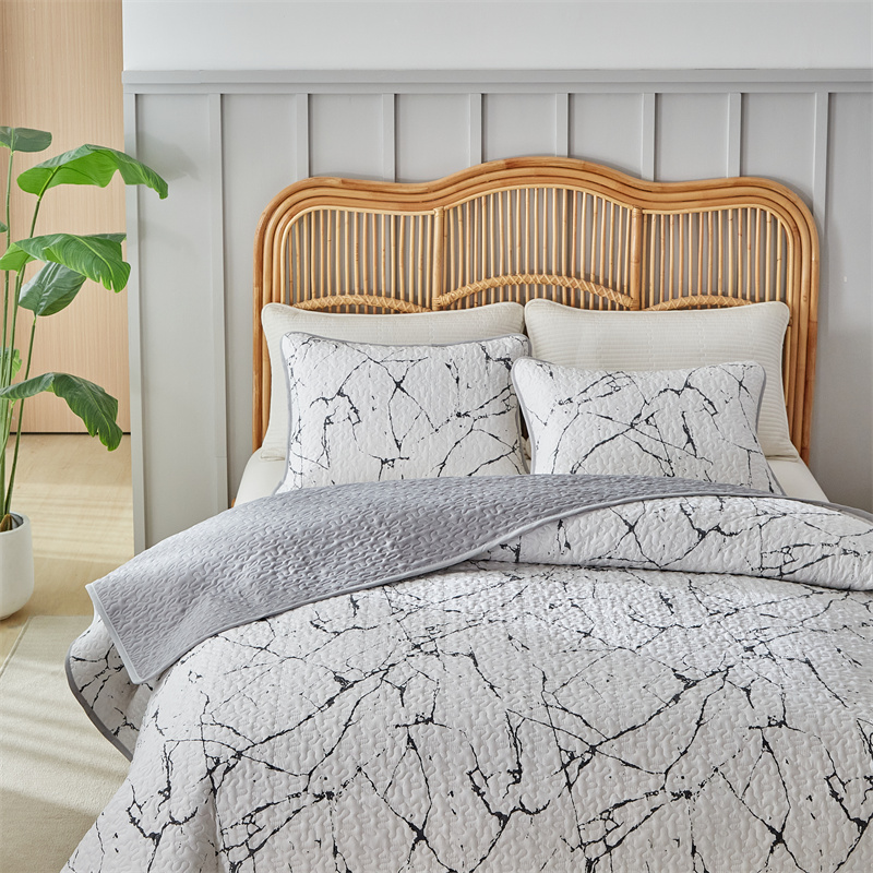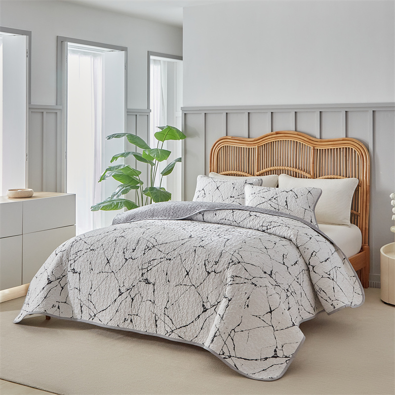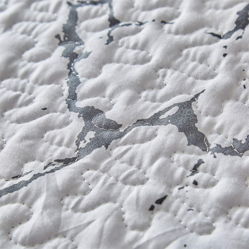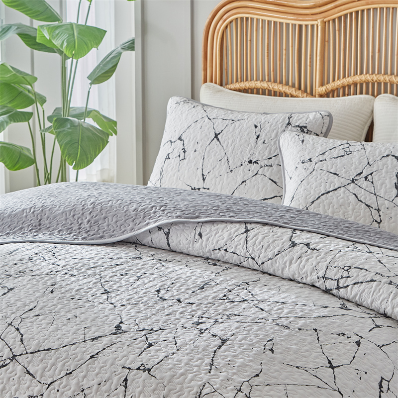 温宁家纺 2025新款跨境双面化纤水洗棉传统印花夹棉四季床盖 抽象黑白