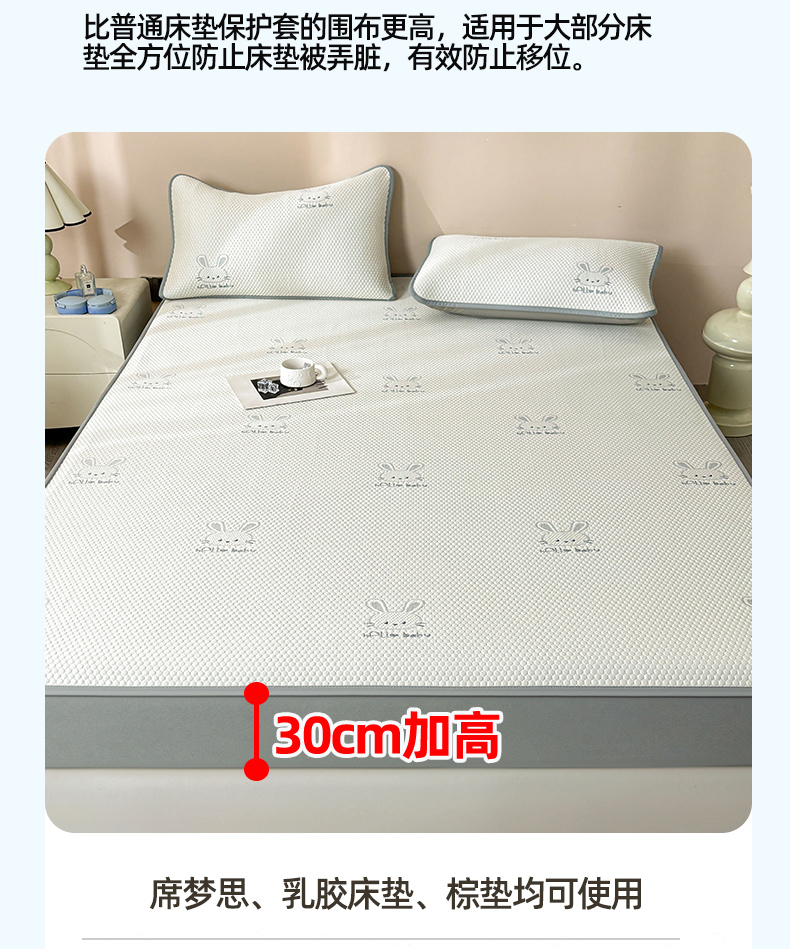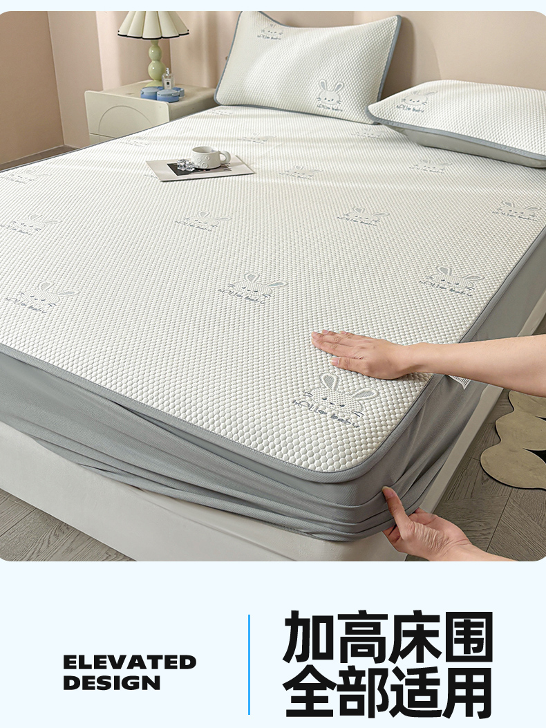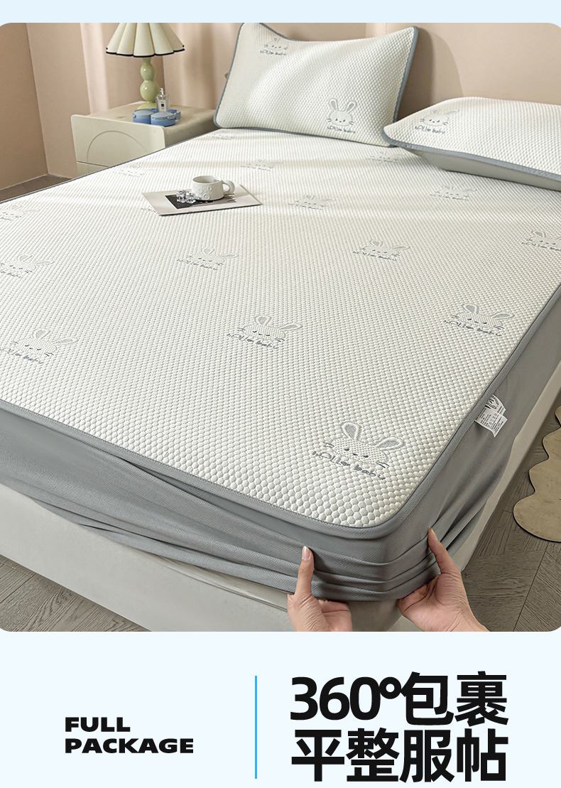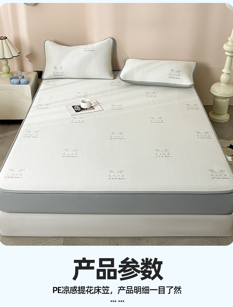 雯豆家纺 2025新款PE凉感提花冰丝床笠三件套全包中分子床罩床垫保护套 吉祥兔-床笠款