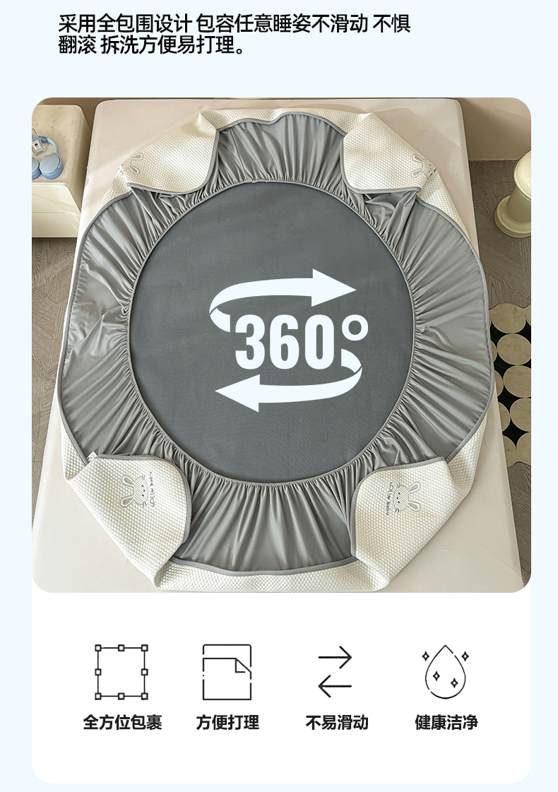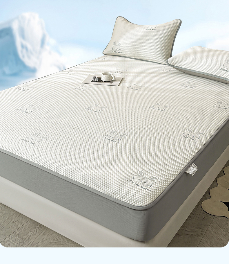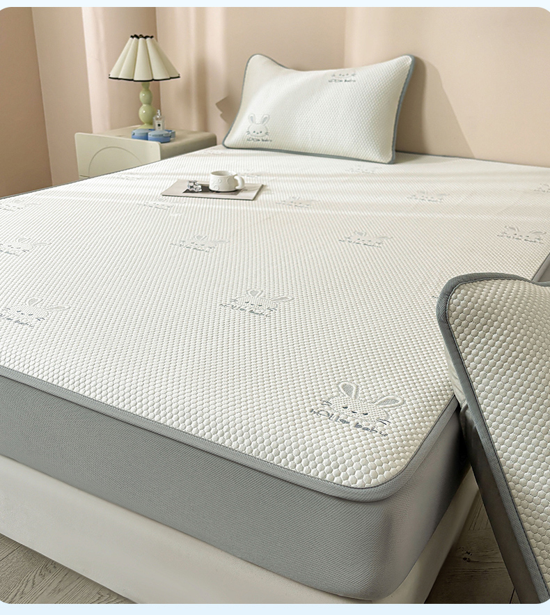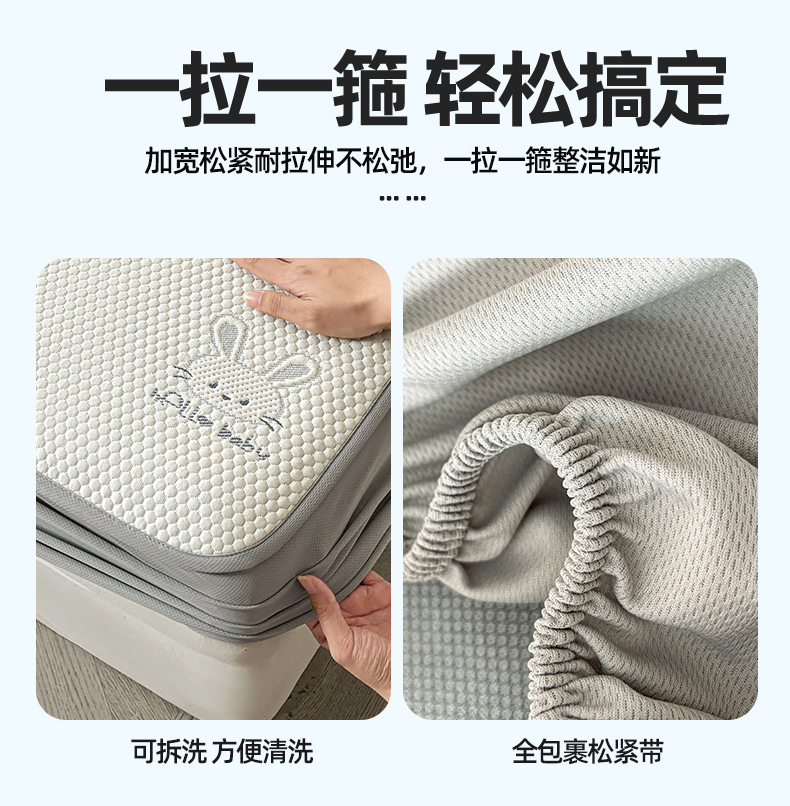 雯豆家纺 2025新款PE凉感提花冰丝床笠三件套全包中分子床罩床垫保护套 吉祥兔-床笠款