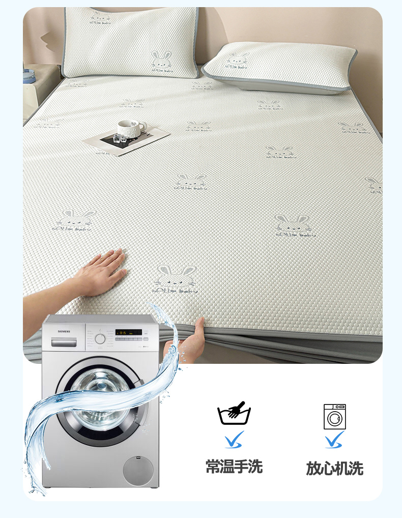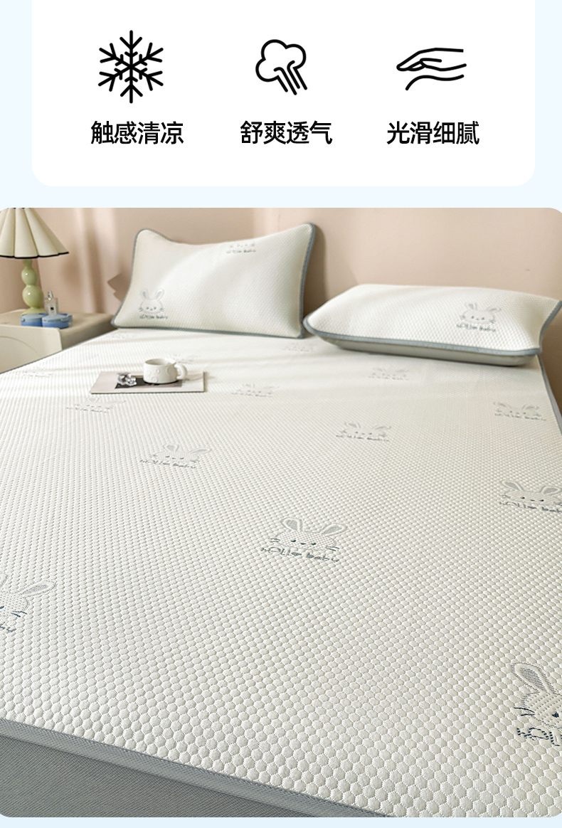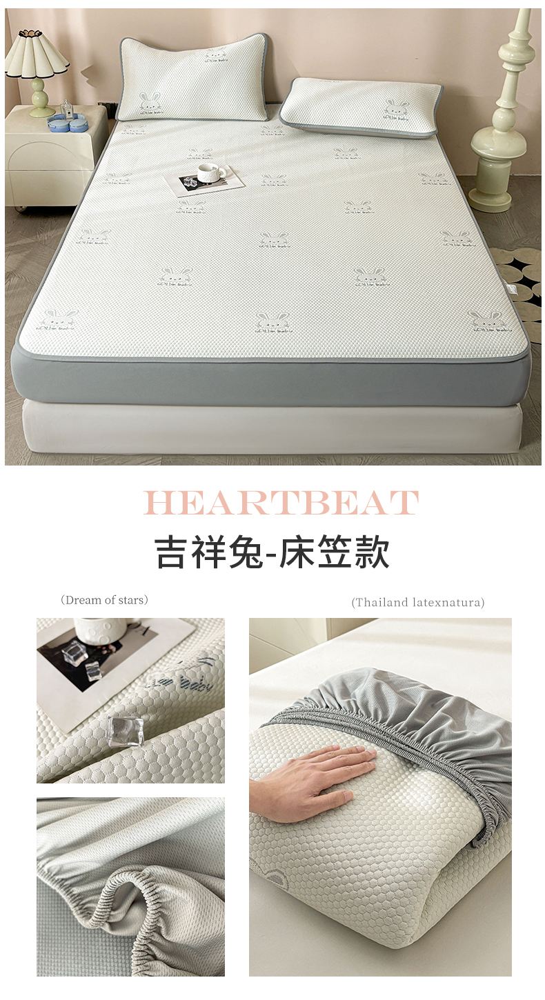 商品名称:雯豆家纺 2025新款PE凉感提花冰丝床笠三件套全包中分子床罩床垫保护套 吉祥兔-床笠款