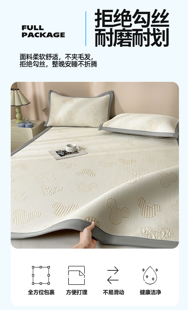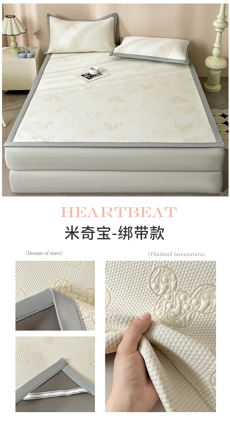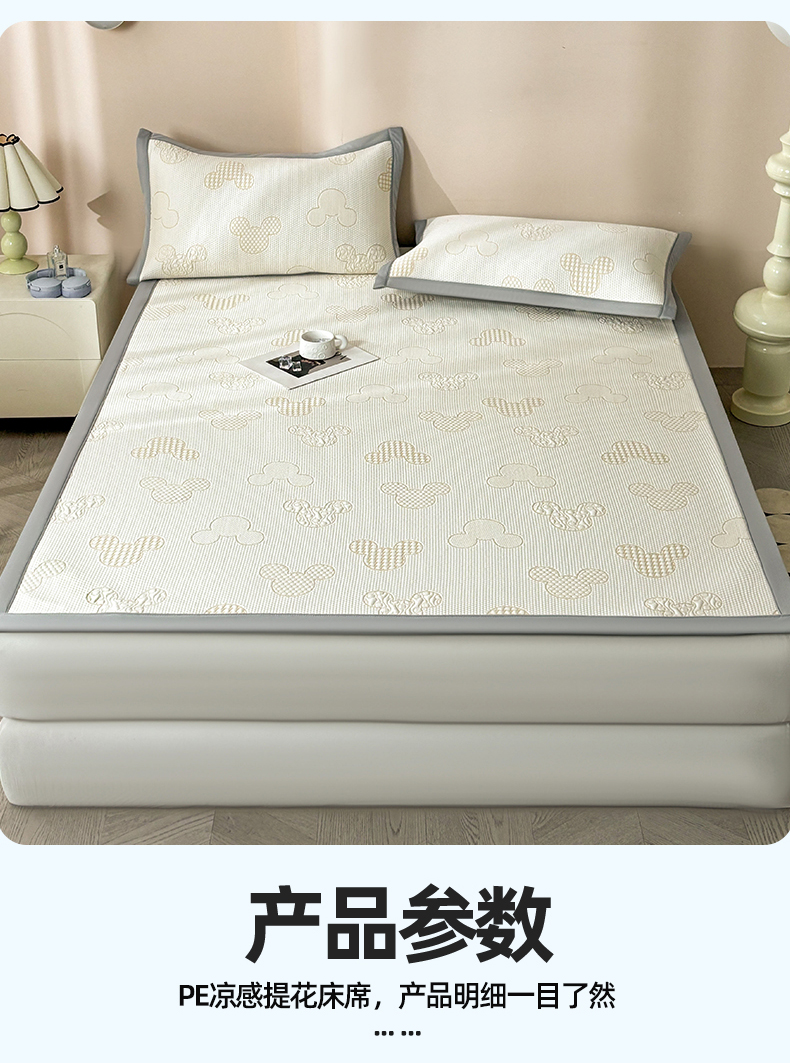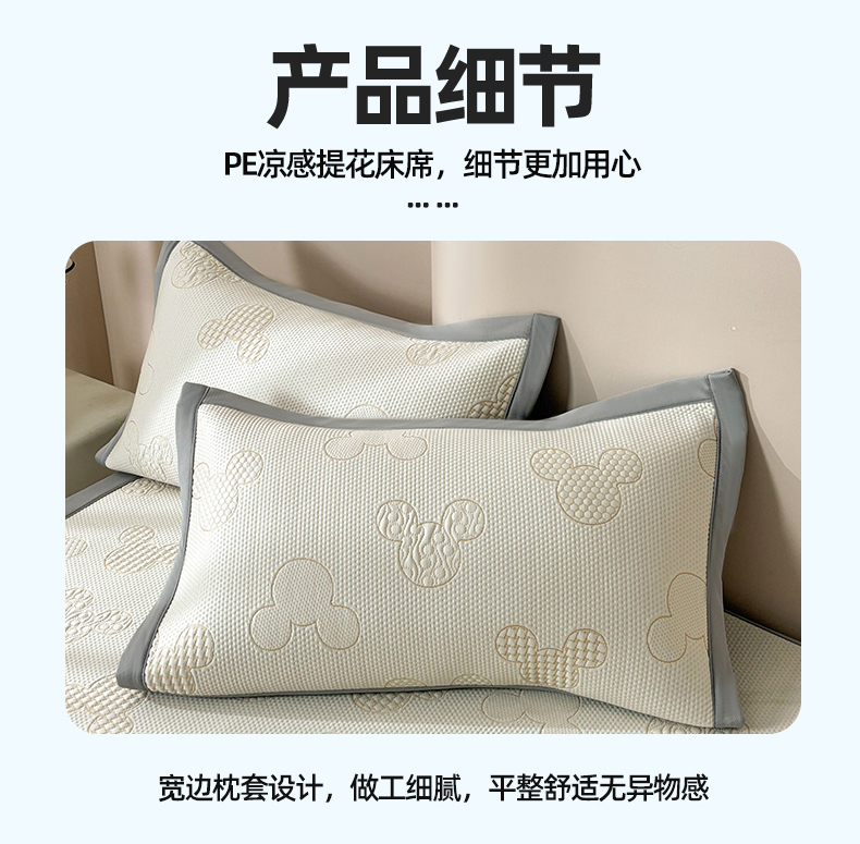 商品名称:雯豆家纺 2025新款PE高分子凉感提花凉席三件套绑带款席子平铺席 米奇宝-绑带款