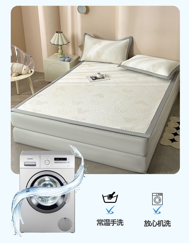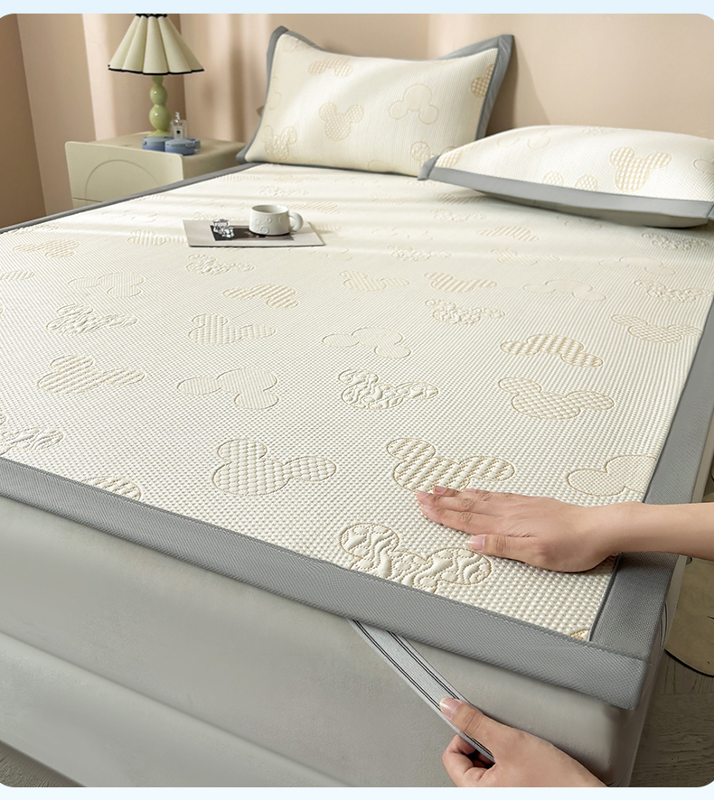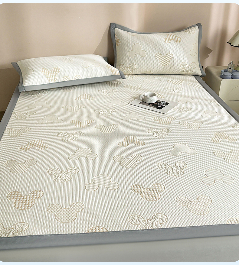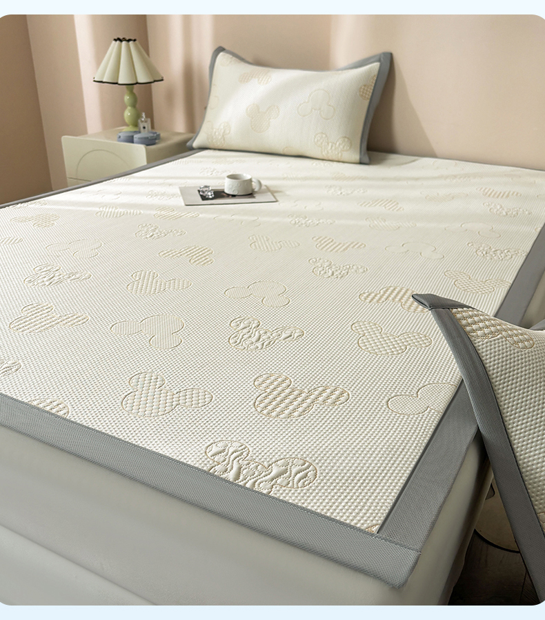 商品名称:雯豆家纺 2025新款PE高分子凉感提花凉席三件套绑带款席子平铺席 米奇宝-绑带款