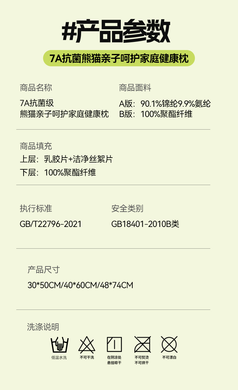 当前位置: 91家纺网 > 商品网购 > 枕头/枕芯/保健枕/颈椎枕 > 普通枕芯 > 麦肯锡 2025新款7A抗菌熊猫亲子呵护家庭健康枕头枕芯 熊猫亲子成人款48*74cm成人款一只