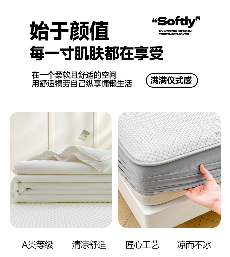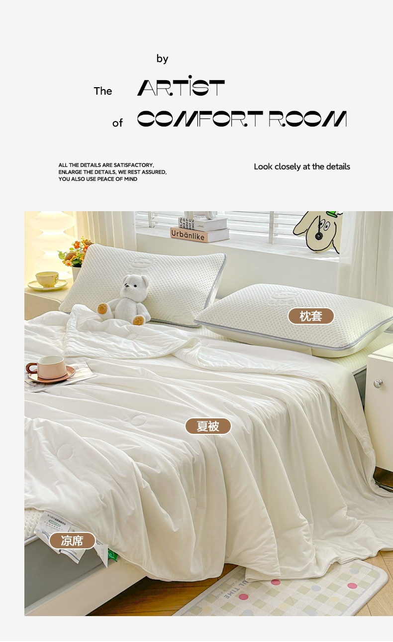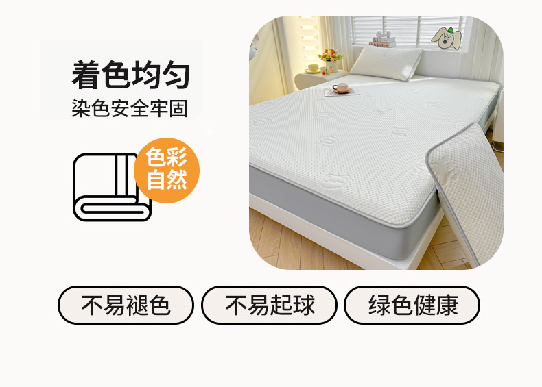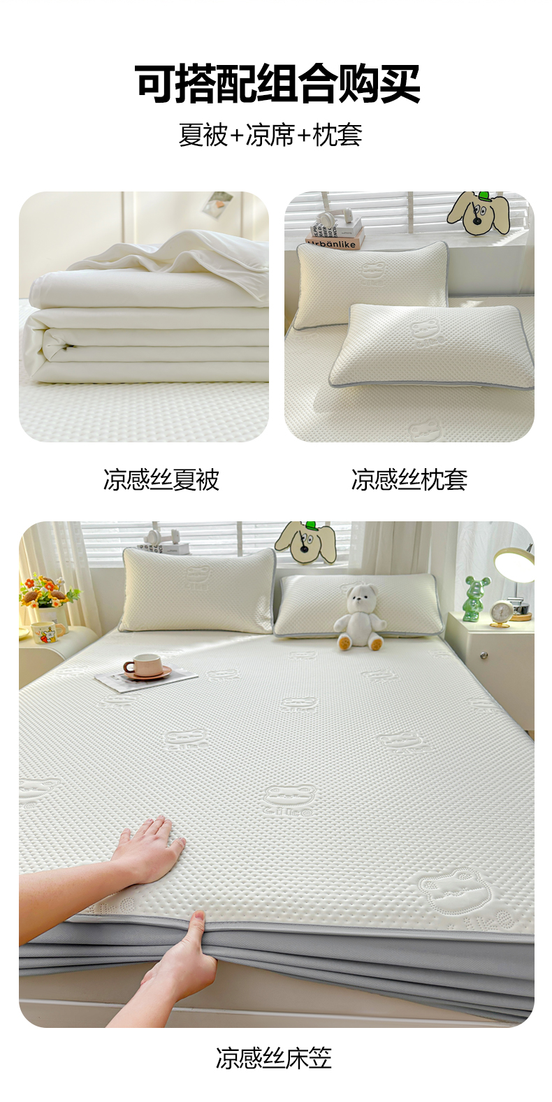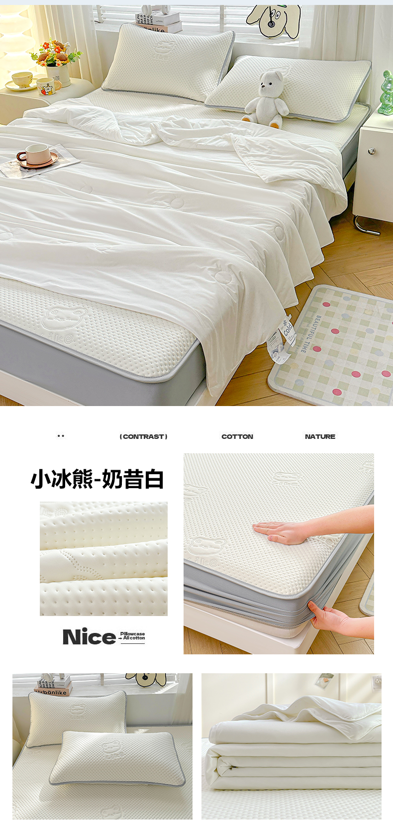 商品名称:慕木家纺 2025新款小冰熊凉感冰丝凉席夏被四件套 床笠款 奶昔白