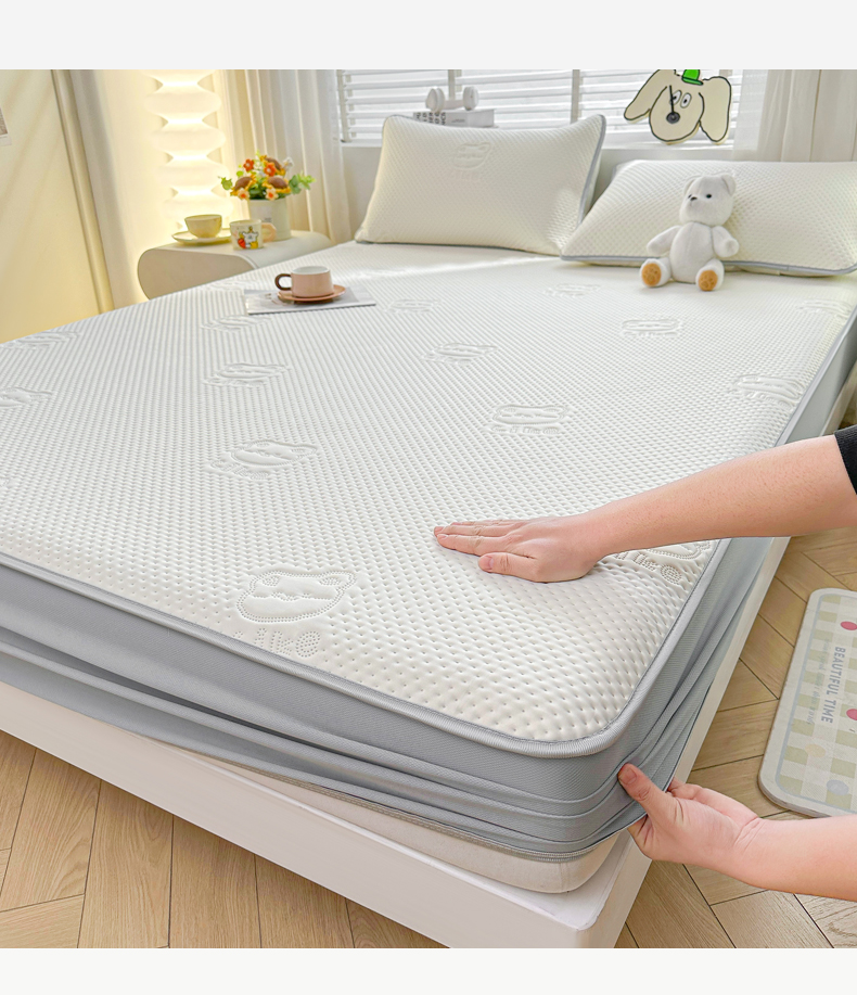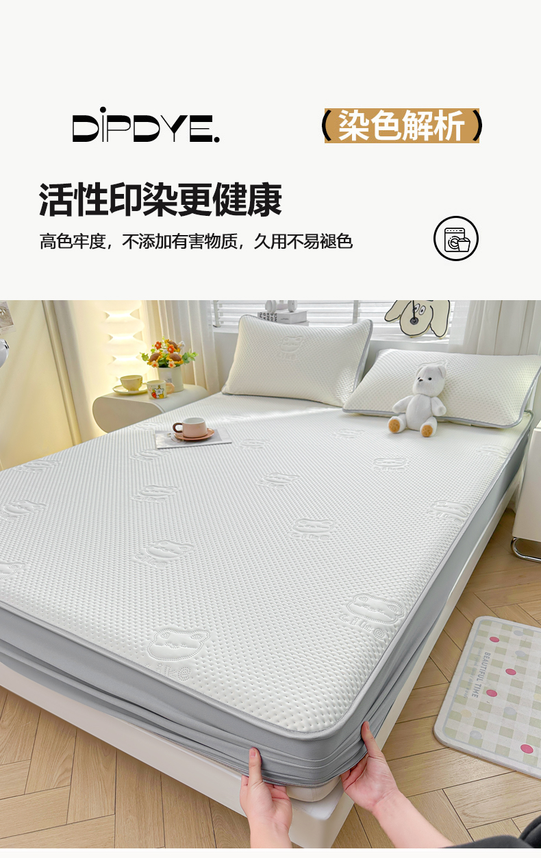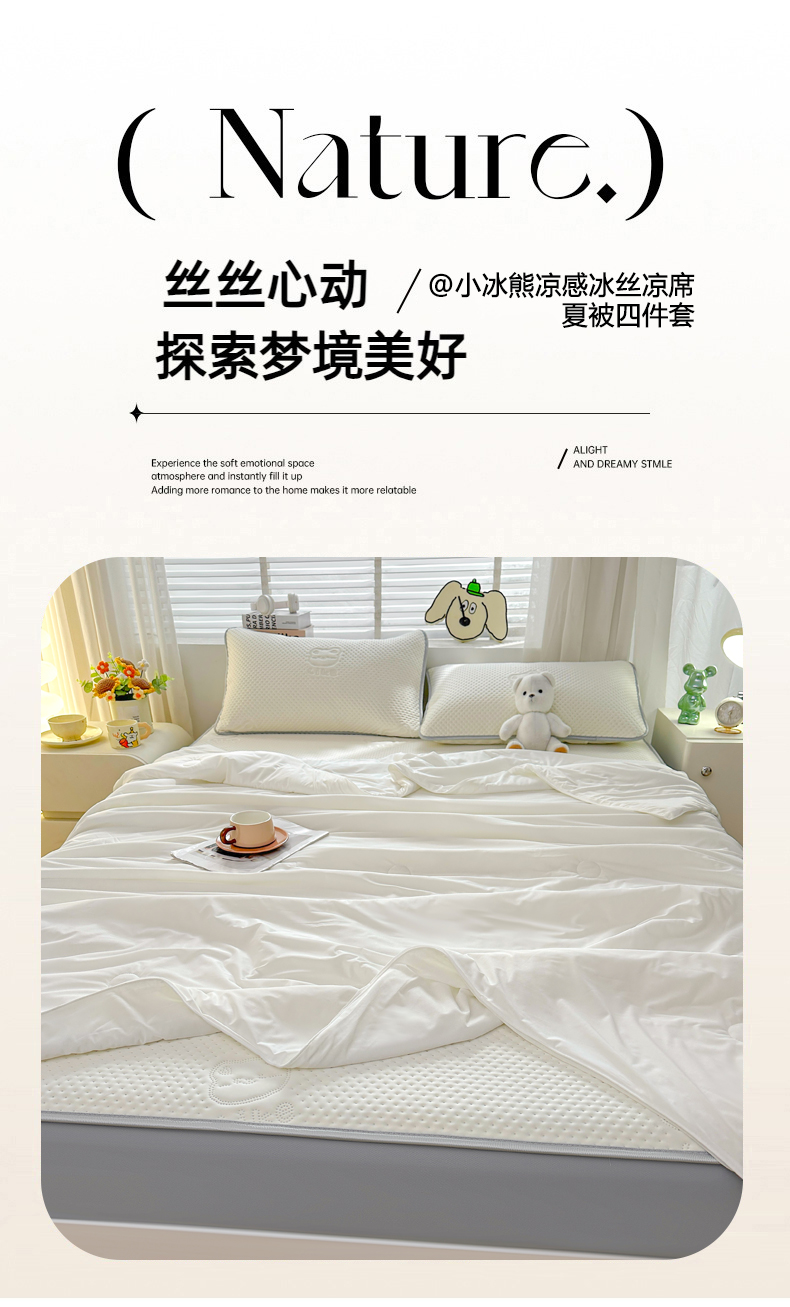 慕木家纺 2025新款小冰熊凉感冰丝凉席夏被四件套 床笠款 奶昔白