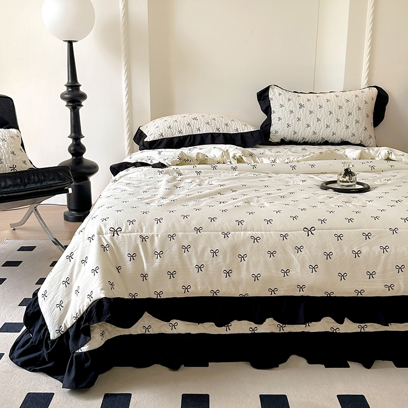 商品名称:韩秀 2025新款水洗棉夹棉韩版花边夏被小清新针织棉小碎花皱皱棉双层纱软糯感夏凉被空调被泡泡棉被四季跑量款 蝴蝶结