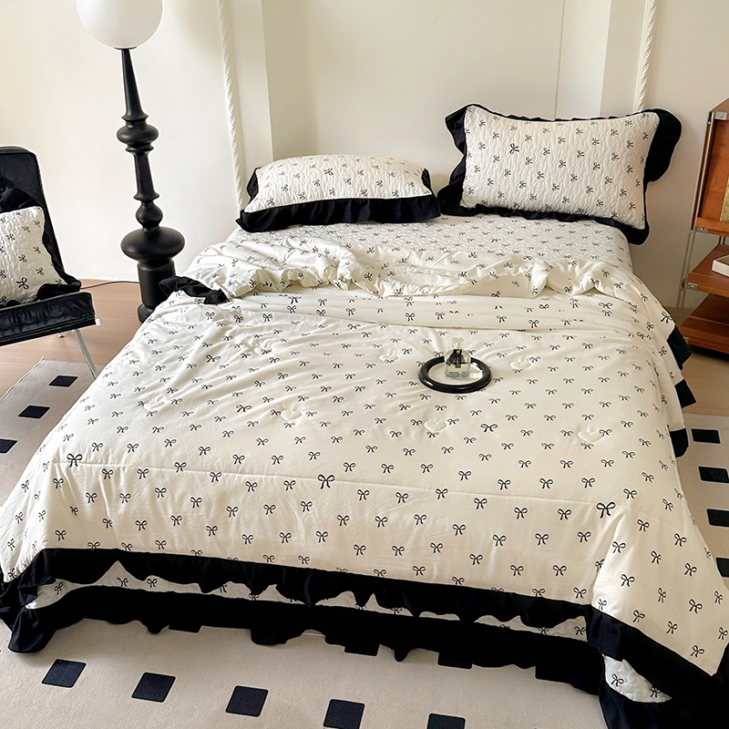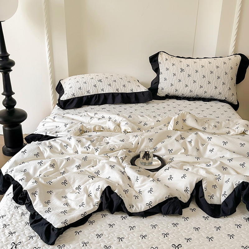 被子 > 夏被 > 韩秀 2025新款水洗棉夹棉韩版花边夏被小清新针织棉小碎花皱皱棉双层纱软糯感夏凉被空调被泡泡棉被四季跑量款 蝴蝶结