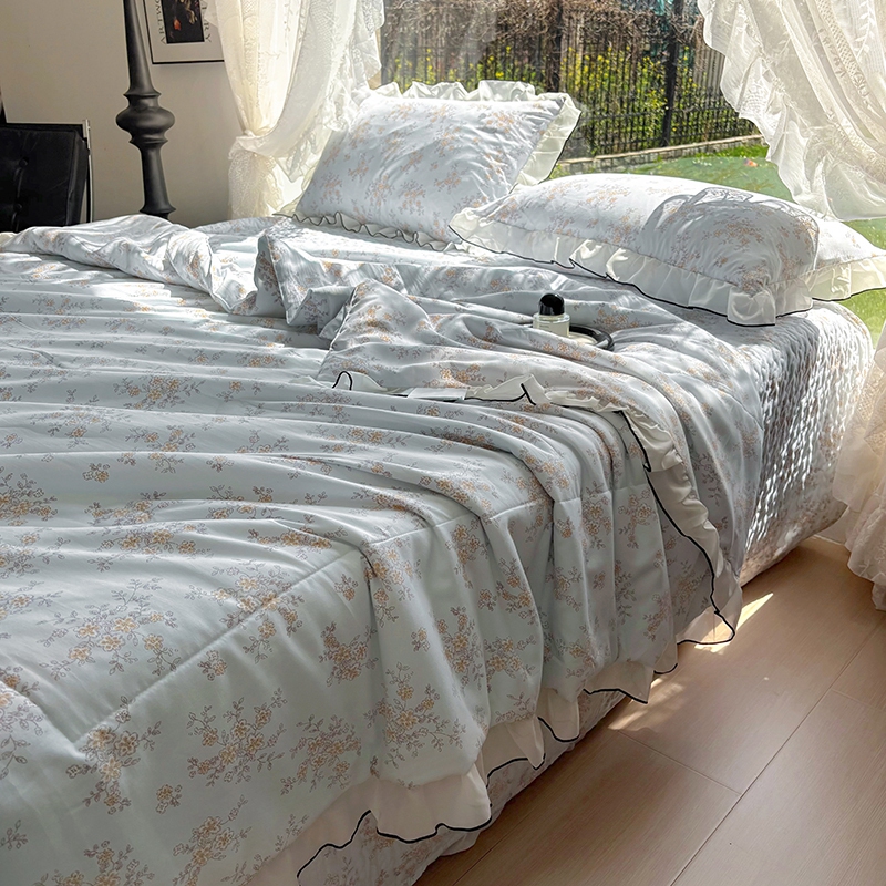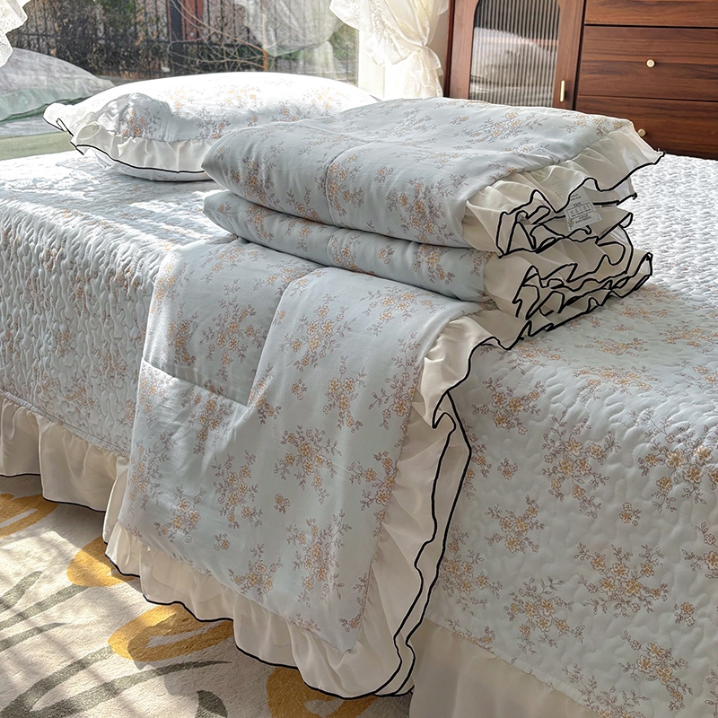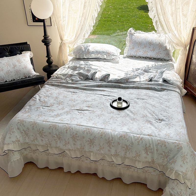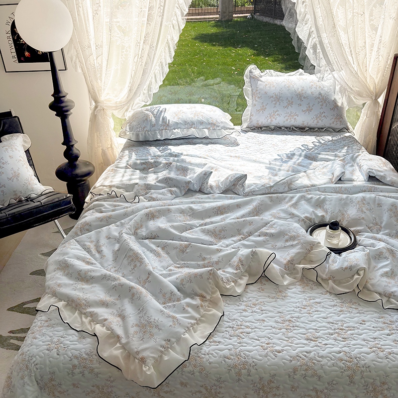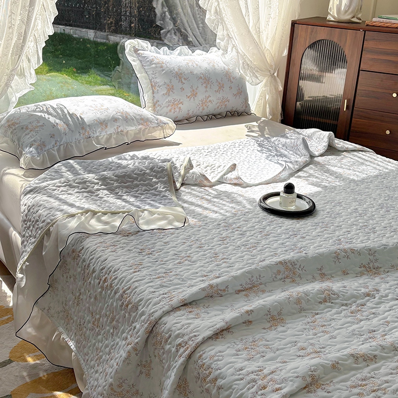 被子 > 夏被 > 韩秀 2025新款水洗棉夹棉韩版花边夏被小清新针织棉小碎花皱皱棉双层纱软糯感夏凉被空调被泡泡棉被四季跑量款 栀子花开