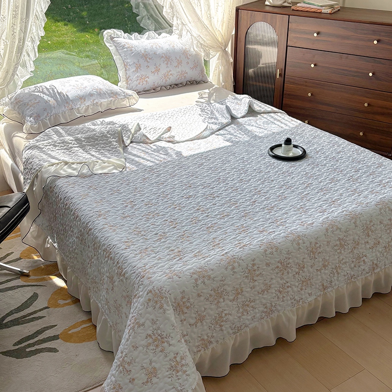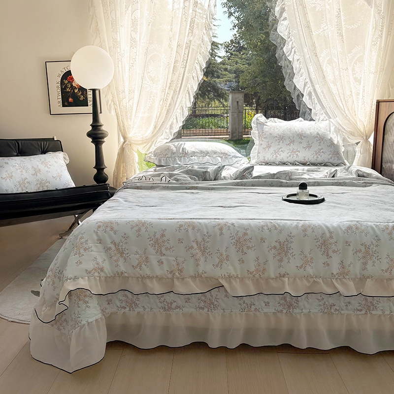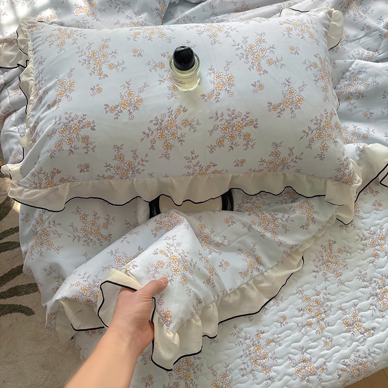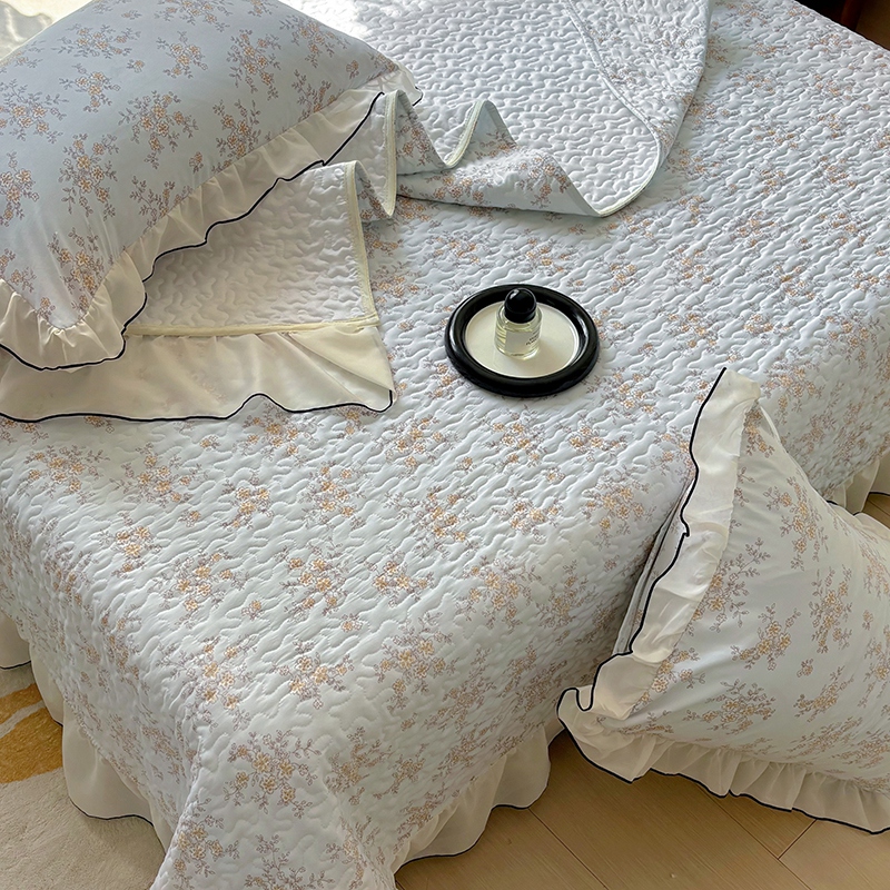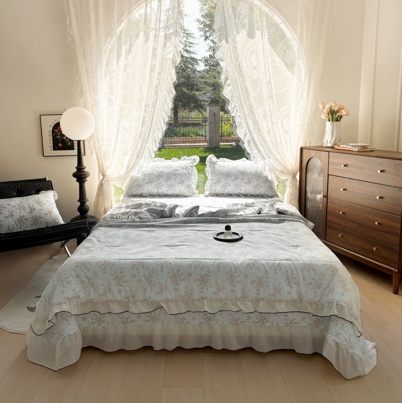 被子 > 夏被 > 韩秀 2025新款水洗棉夹棉韩版花边夏被小清新针织棉小碎花皱皱棉双层纱软糯感夏凉被空调被泡泡棉被四季跑量款 栀子花开