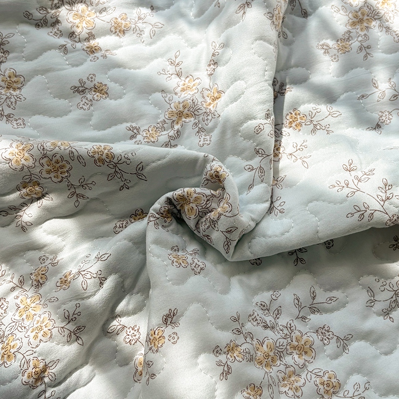 商品名称:韩秀 2025新款水洗棉夹棉韩版花边夏被小清新针织棉小碎花皱皱棉双层纱软糯感夏凉被空调被泡泡棉被四季跑量款 栀子花开