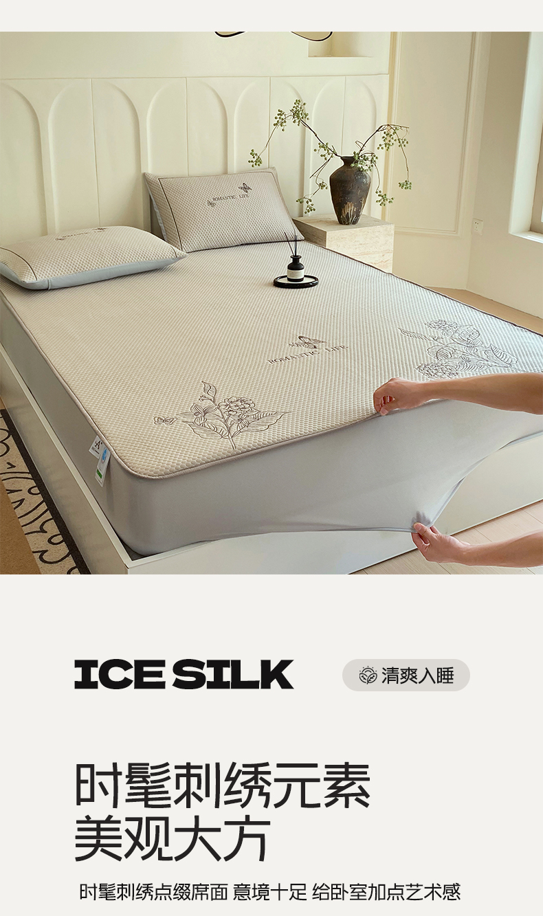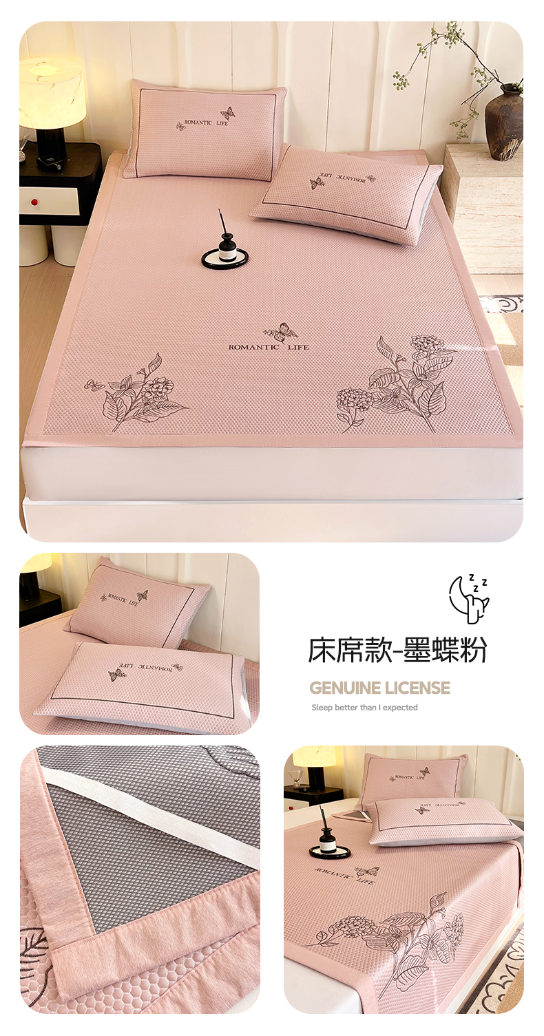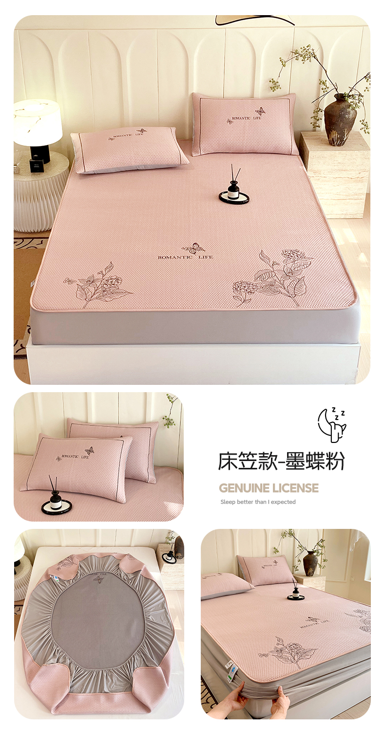 宜家坊 2025新款A类PE中分子绣花软凉席-墨蝶 床笠款-墨蝶金